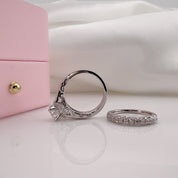 This 1.0 ct Round Cut Certified Moissanite Diamond Solitaire Ring Set is a head-turner! Its stunning centerpiece of certified moissanite emits a natural and authentic sparkle. Held firmly in place with prong settings, this ring is designed to last a lifetime. The unique band only adds to the overall elegance of this piece, making it a must-have for those who love to add a touch of sophistication to their style.