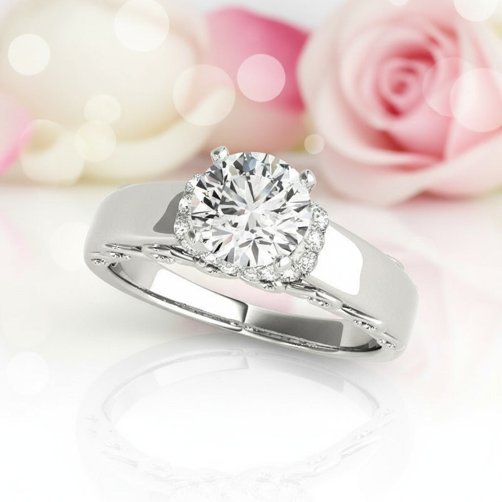 1.0 ct Round Cut Diamond White Gold Solitaire Ring Set