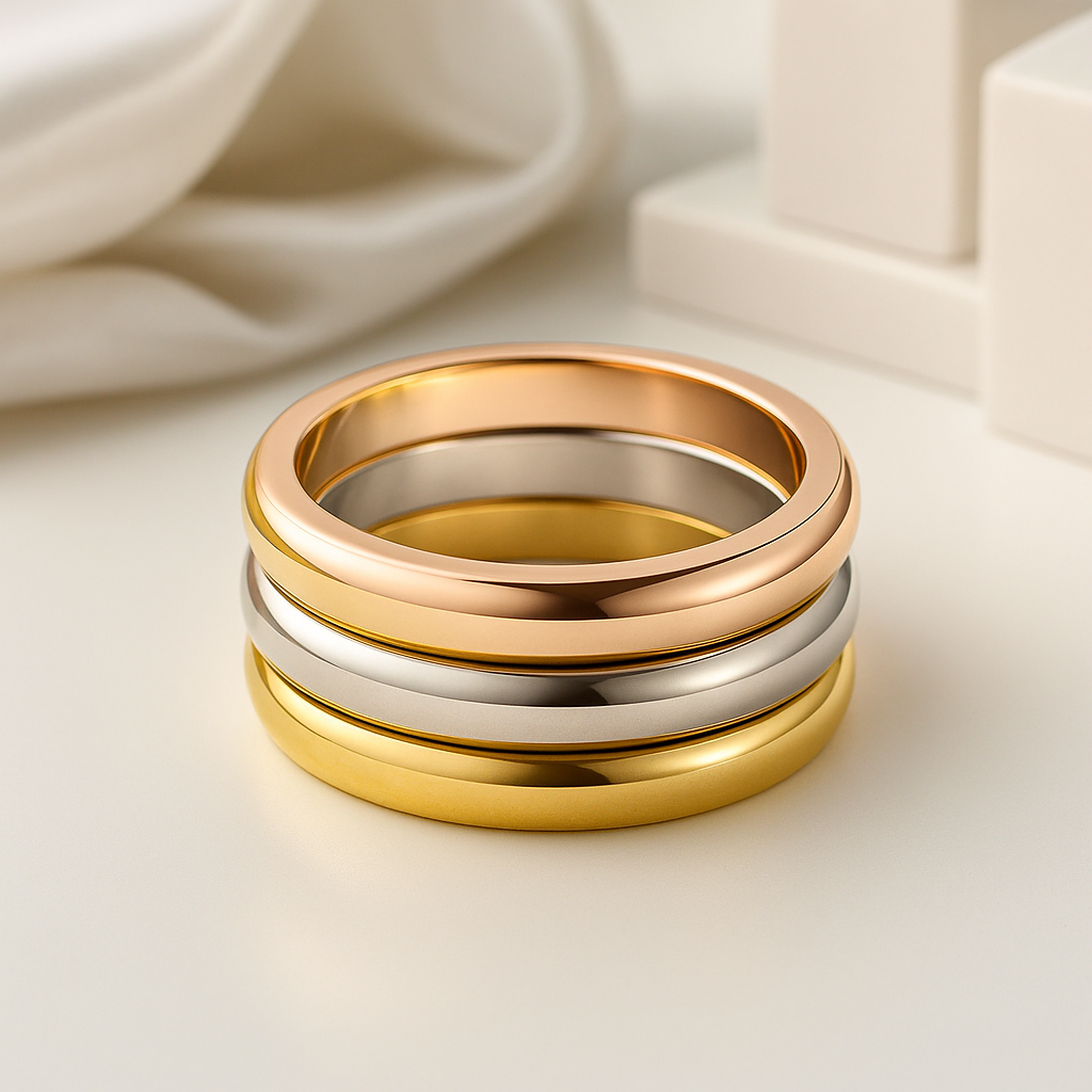 Discover elegance in simplicity with our Simple 3 Layers Ring Band. Crafted from durable stainless steel, this sleek design draws inspiration from celebrity fashion, making it a refined choice for any event. Elevate your accessory collection with this timeless piece.