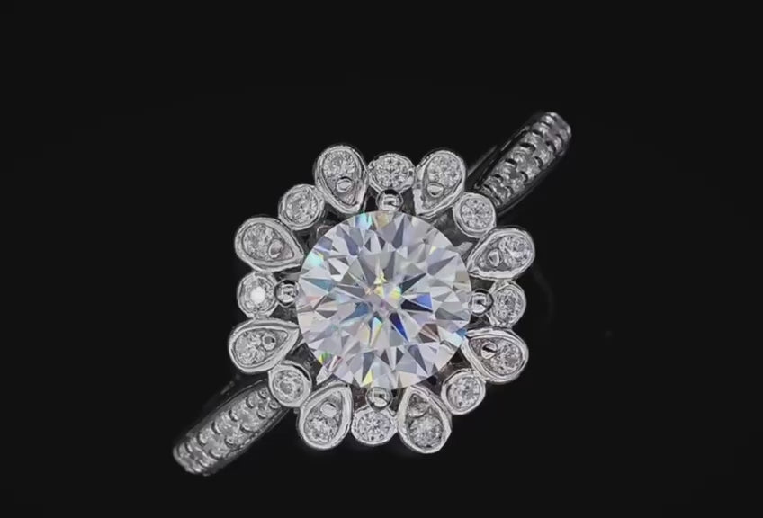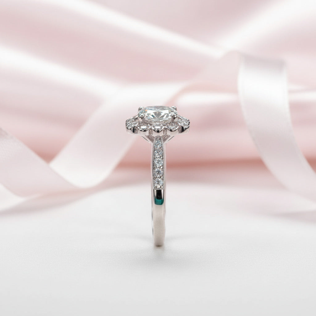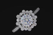 White Gold Sunflower 1.2ct Diamond Halo Engagement Ring