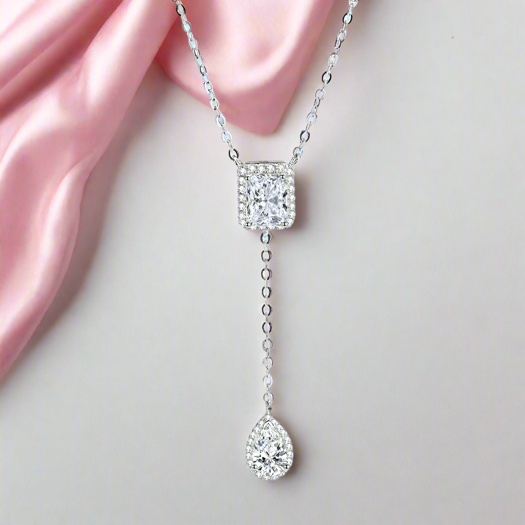 Who could resist the allure of shimmering diamonds adorning their neck? Give your loved one the gift of luxury with our 3ct Emerald and Pear Cut Diamond Necklace. Featuring the brilliance of Certified Moissanite , coupled with the sophistication of emerald and pear cut diamonds, this necklace is the perfect accessory that complements any outfit. Its elegant design exudes a timeless appeal, making it a necklace to cherish for a lifetime. Wrap yourself in opulence with this luxurious piece!