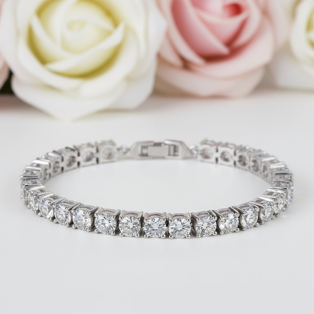 Indulge in the opulence of our exquisite Luxury Bracelet adorned with stunning Round Diamond Alternatives. Crafted with the finest Silver and Platinum materials, and expertly plated with sleek White Gold, this piece is elevated to a whole new level of elegance. Each Round Diamond is thoughtfully cut and crafted, creating a brilliant display of light and luxury. Perfect for adding a touch of sophistication to any ensemble.