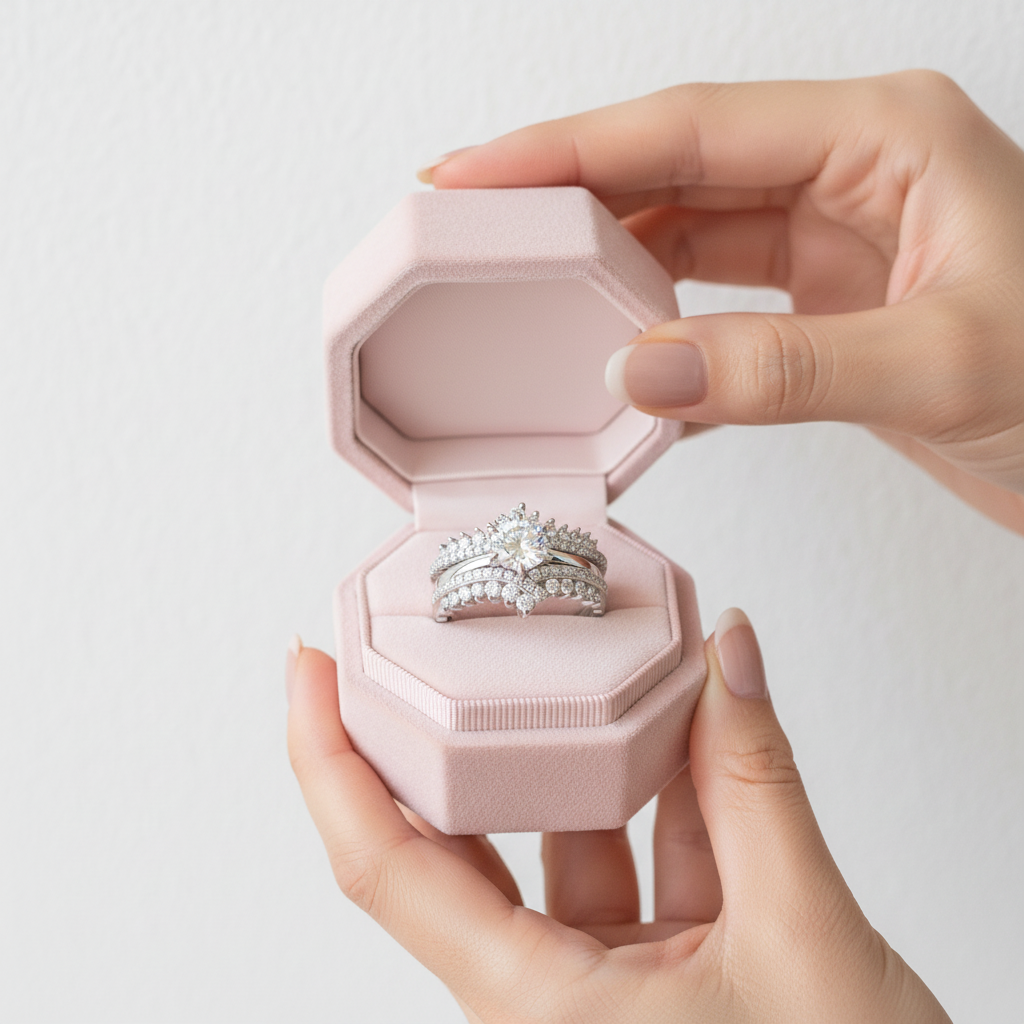 Elegant Detachable Ring Set with Diamond. Crafted from 925 Sterling Silver and diamond alternative, this handmade set delivers lasting brilliance and radiance. Perfect for yourself or as a meaningful gift.