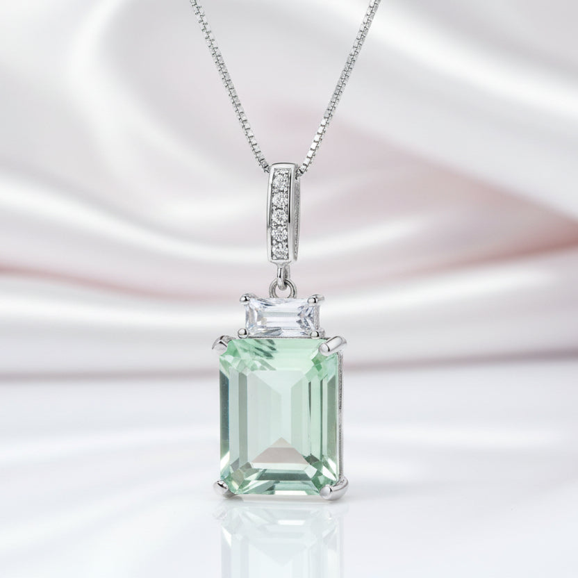 Introducing our stunning 2.94 Ct Natural Moss Agate Classic Necklace! This beautiful piece features an emerald-cut gemstone that will surely catch the eye. Made with top-quality 92.5% pure silver + 7.5% hypoallergenic metals, this necklace is not only stylish but durable too. Make a statement and add this unique piece to your collection today!