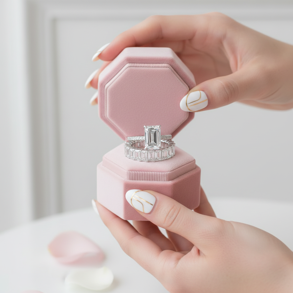 Stone Comparison: Sits brilliantly between Certified Moissanite and CVD Lab-grown Diamonds.