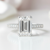 If you're searching for a classic and beautiful engagement ring, look no further! The Stunning Emerald Cut Simulated Diamond Engagement Ring is sure to catch anyone's eye with its 14k white gold and sparkly diamond design. This elegant piece is perfect to commemorate any relationship!