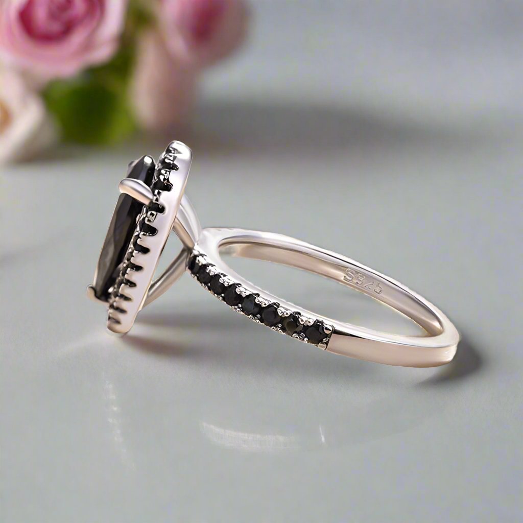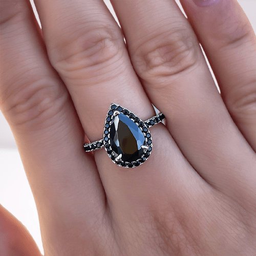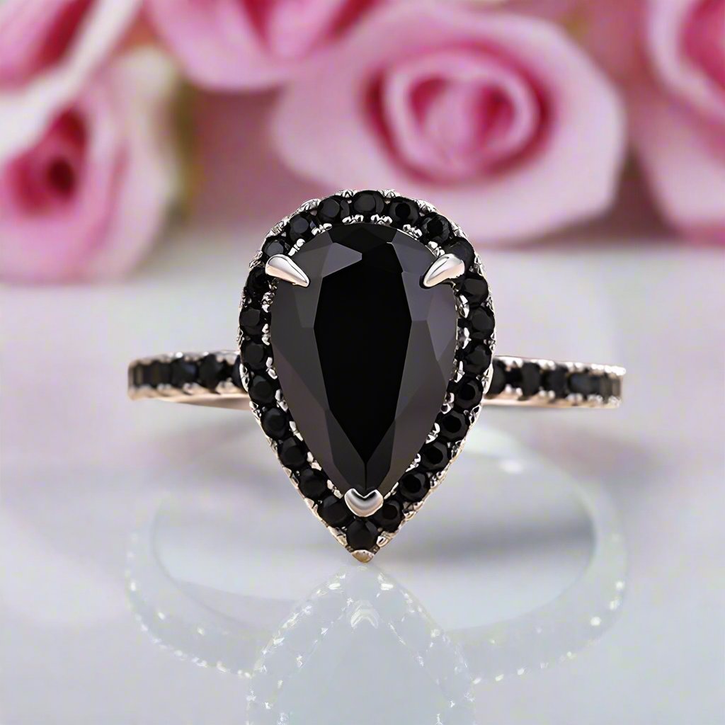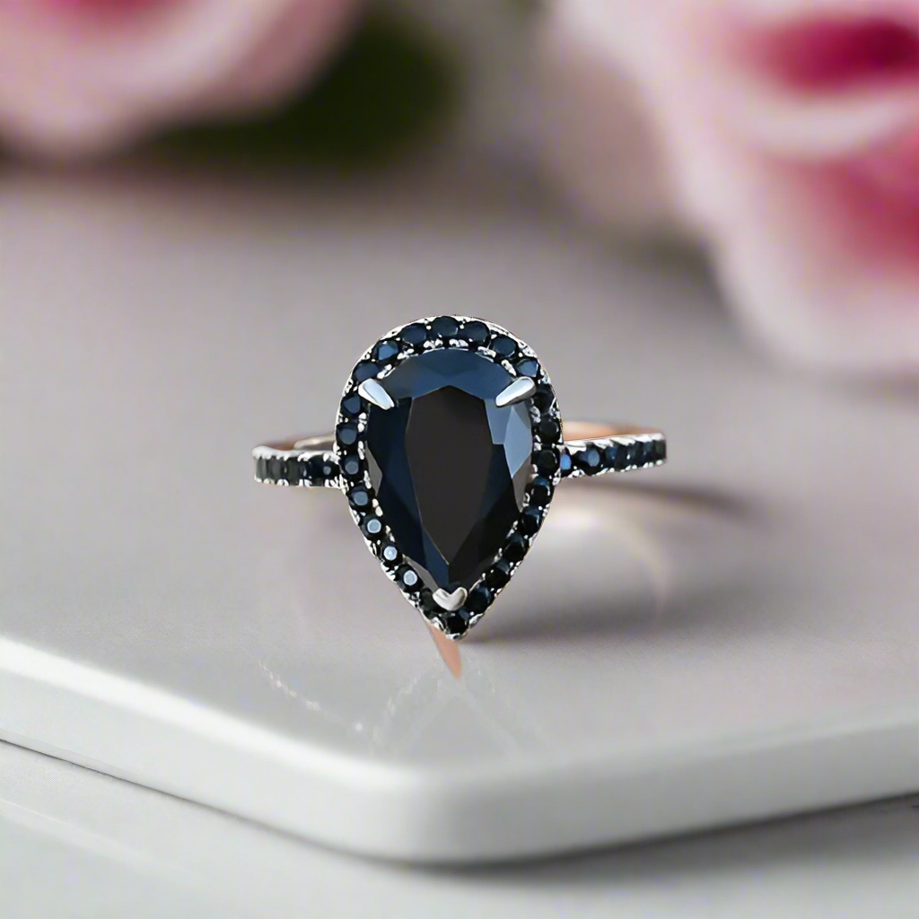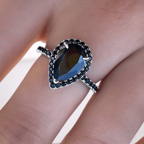 Unique Pear Cut Halo Black Diamond Engagement Ring