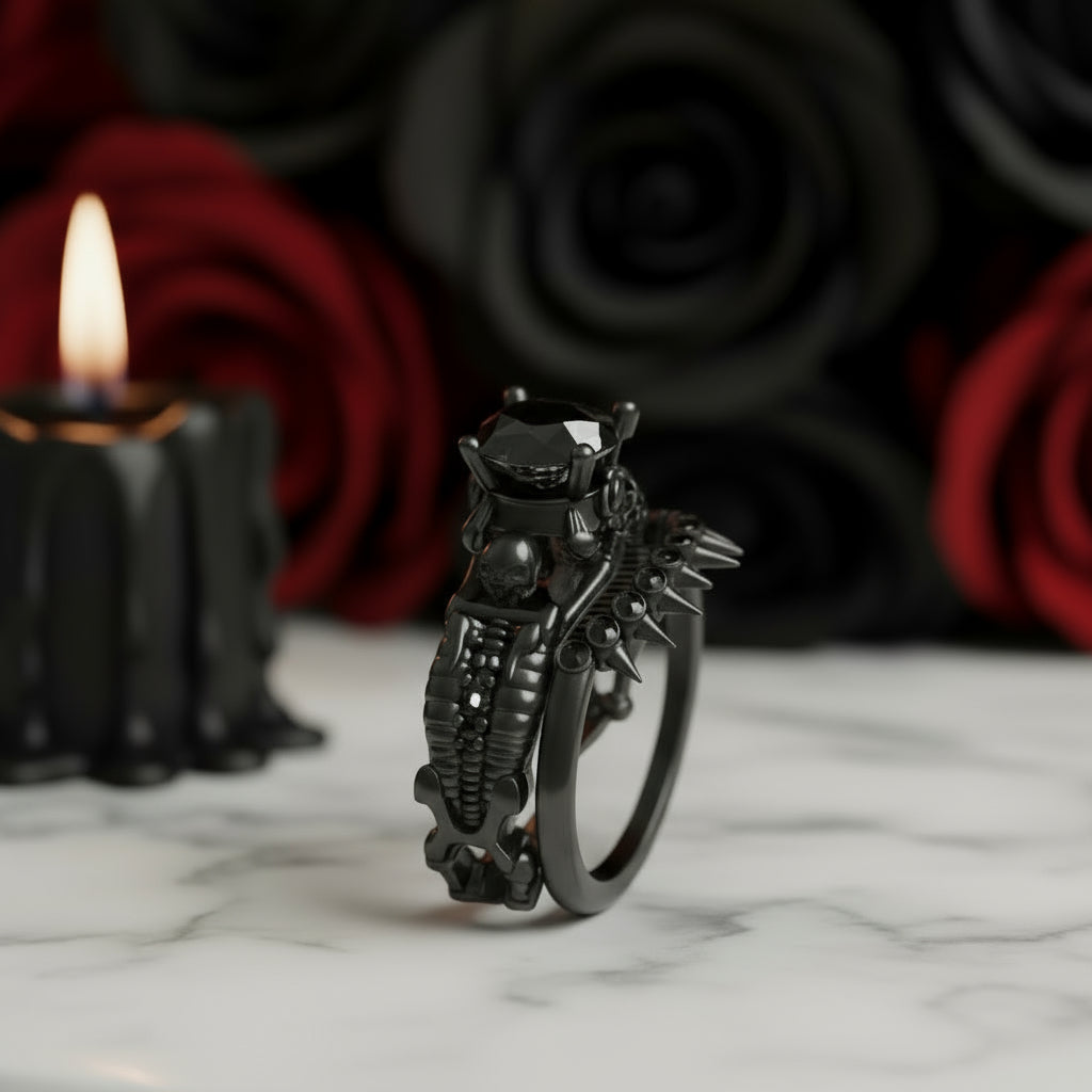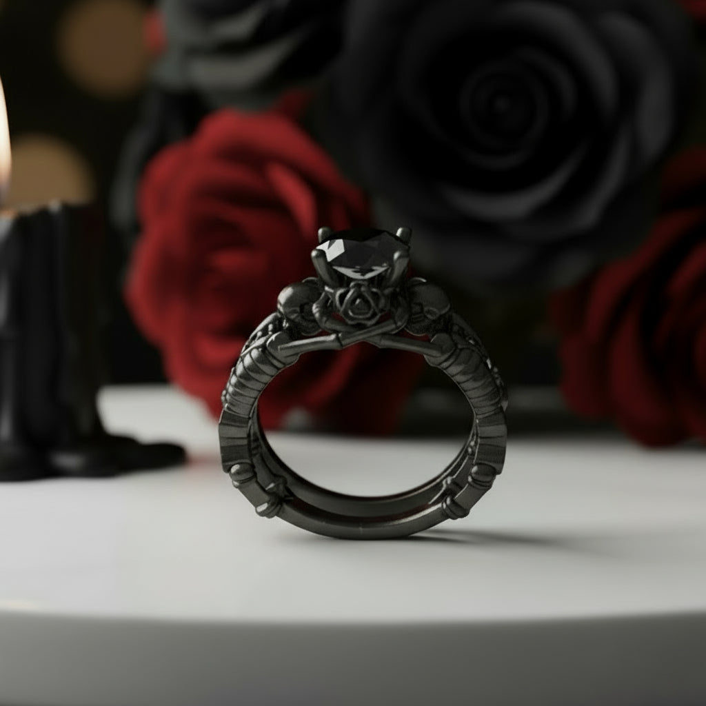 Eternal Adoration- 1.5 Carat Black Diamond Gothic Ring Set