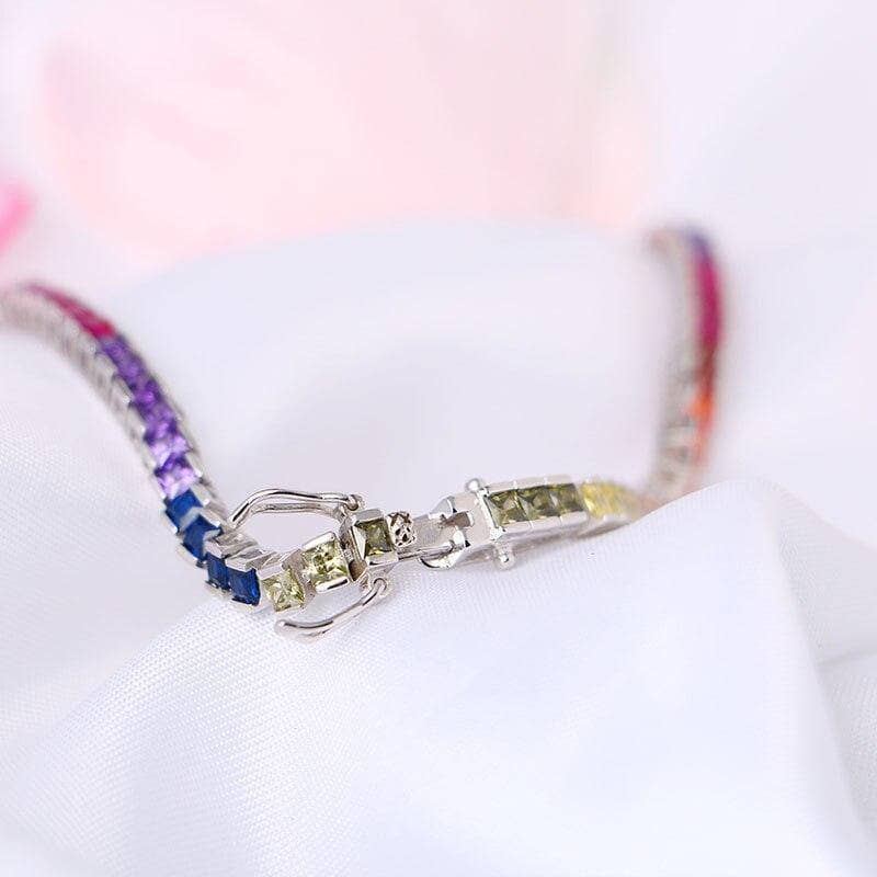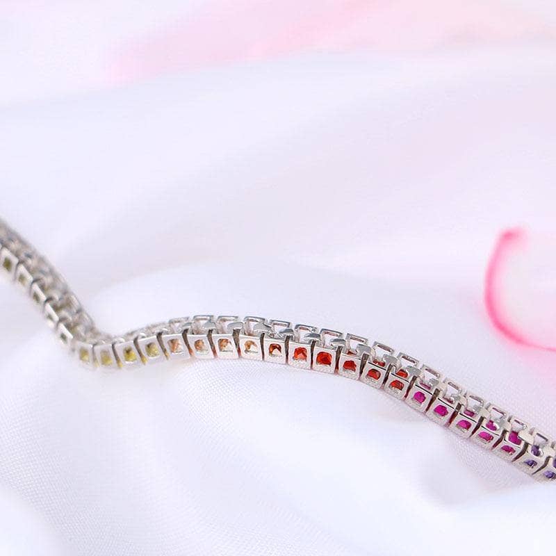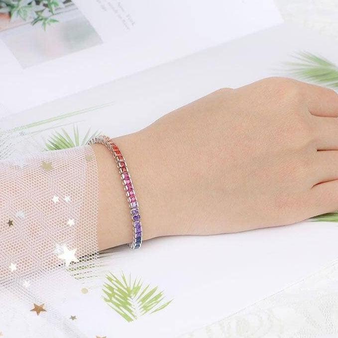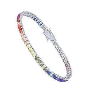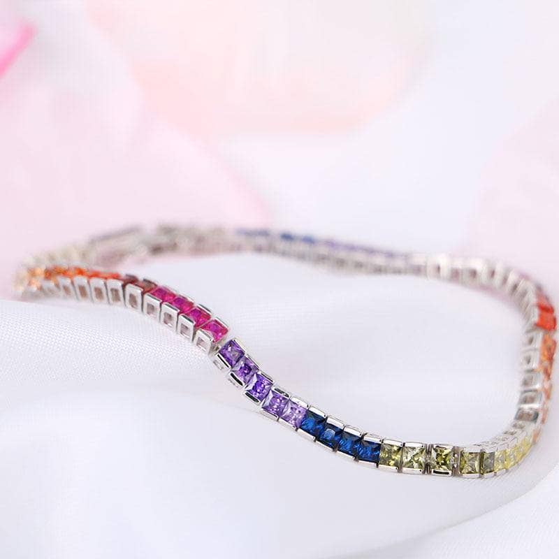 4 Prong Square Rainbow Crystal Tennis Chain Bracelet