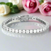 Unleash your inner sparkle with our 4mm Certified Moissanite Tennis Bracelet by Black Diamonds New York. This stunning bracelet features high-quality diamonds that radiate elegance and grace. Make a statement without breaking the bank - this gorgeous piece is the perfect combination of luxury and affordability.