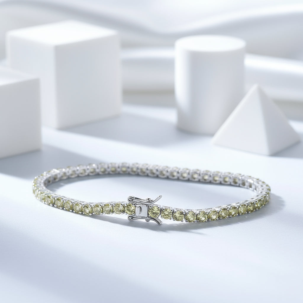 Light Yellow Round Cut Bracelet In Sterling Silver