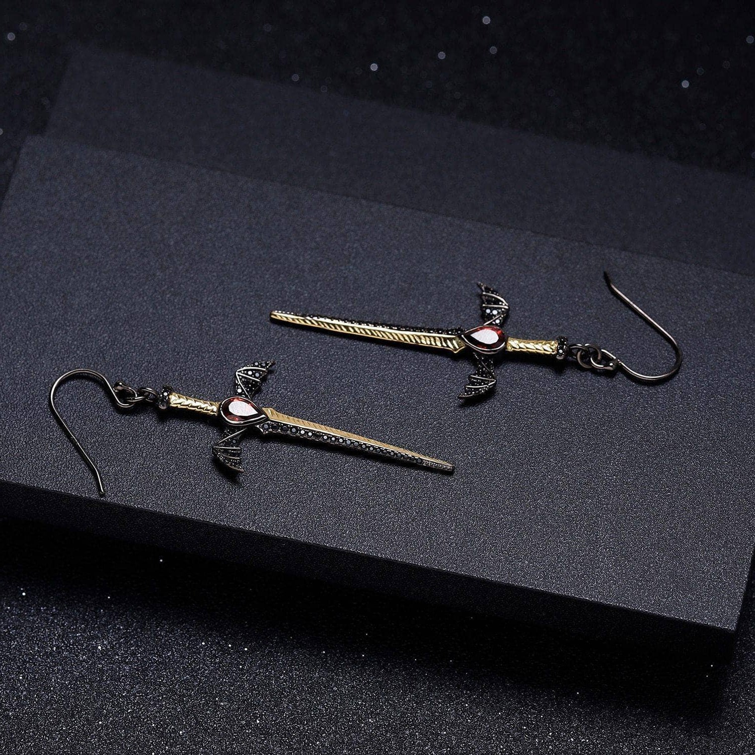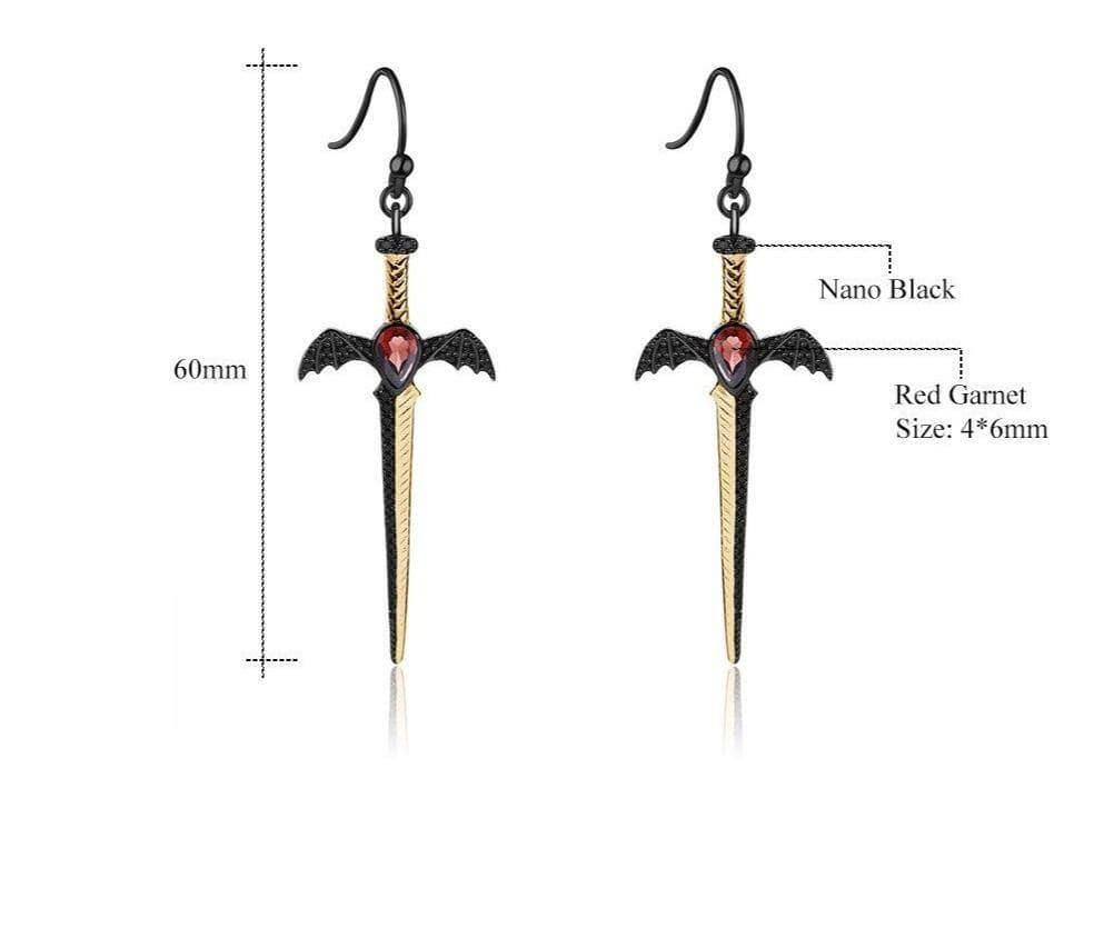 1.05Ct Natural Garnet Bat's Wing Sword Drop Earrings