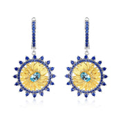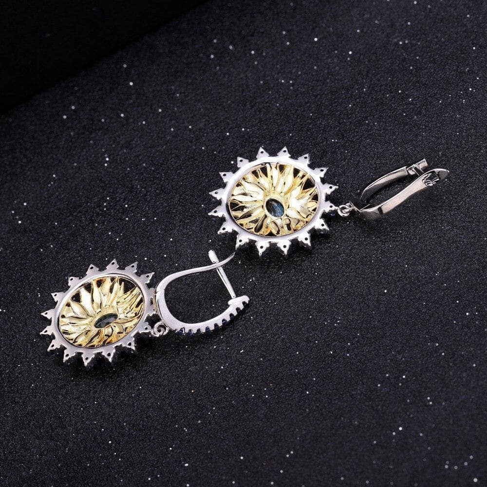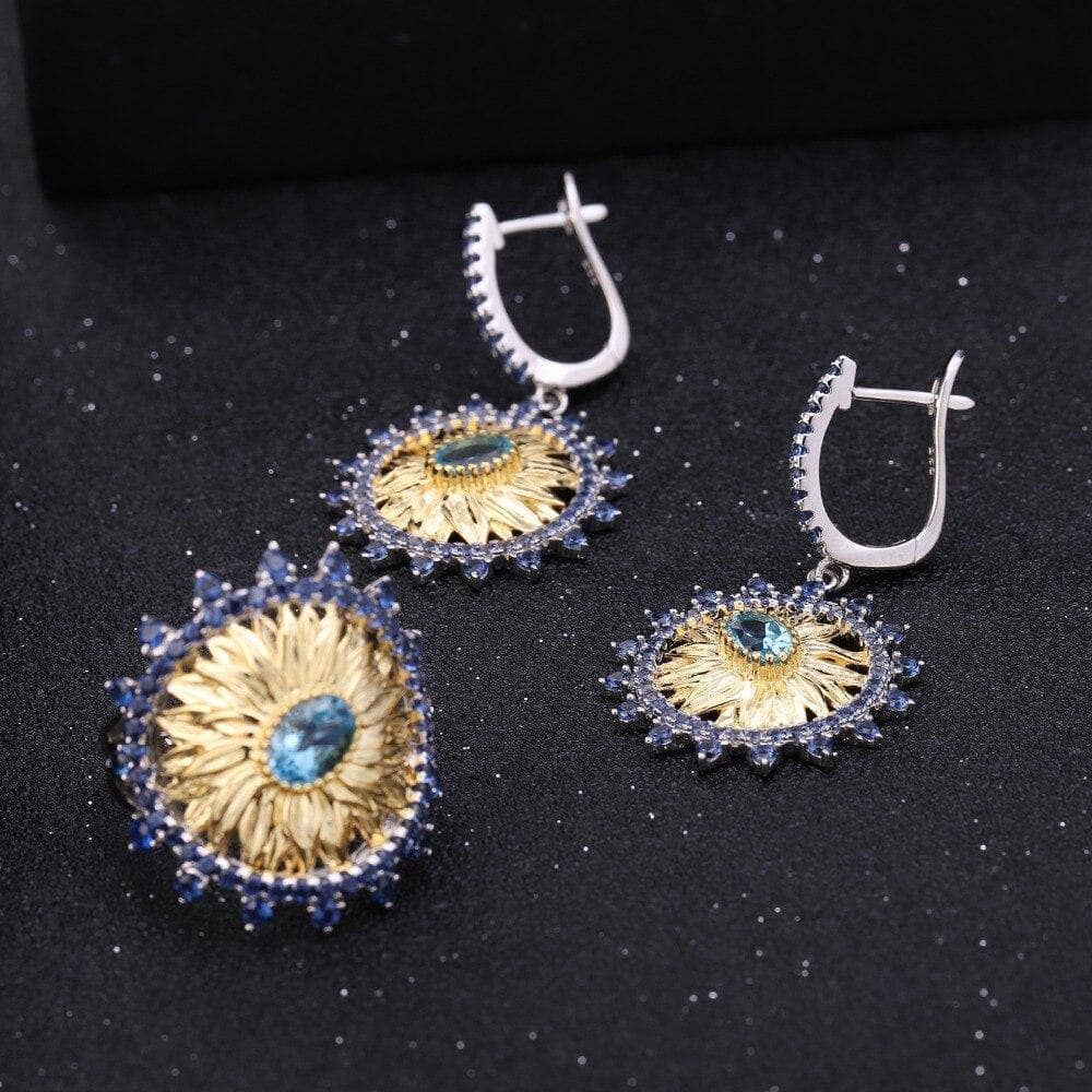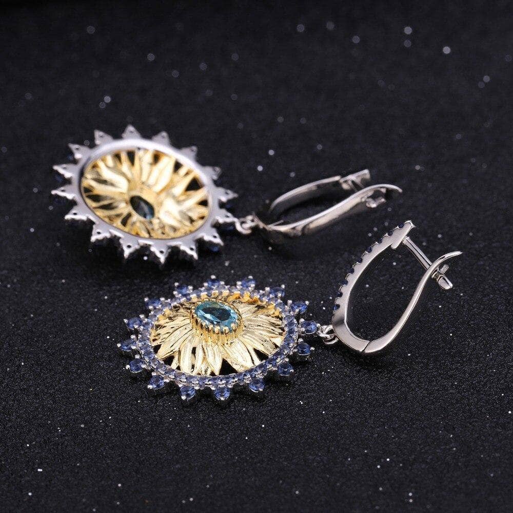 1.20 Ct Natural Swiss Blue Topaz Sunflower Drop Earrings