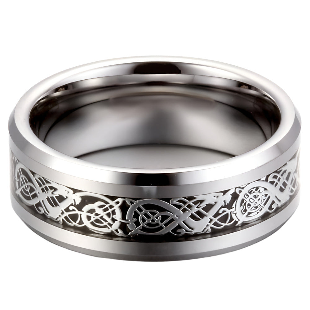 8mm Celtics Dragon Tungsten Carbide Men's Ring