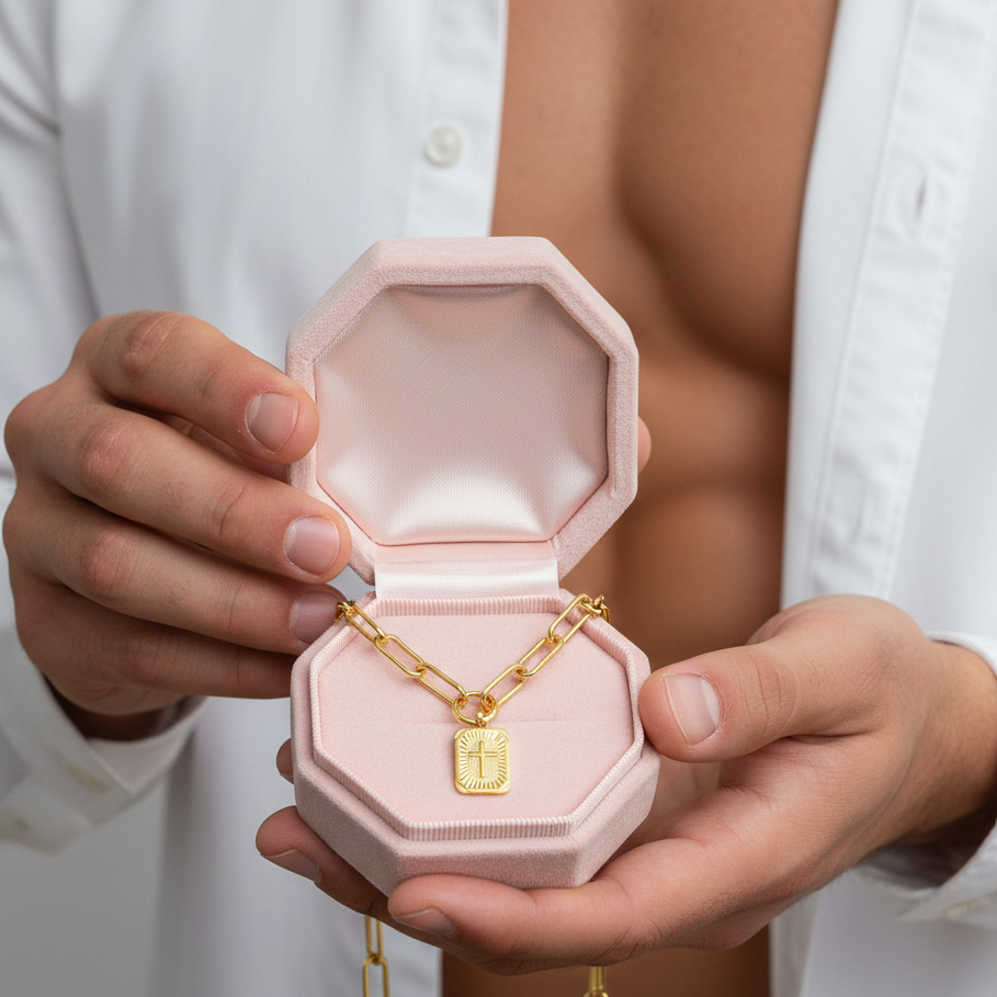 Embrace elegance with our Miami Cross Square Rolo Box Chain Choker Necklace. This beautiful piece showcases a unique combination of a classic rolo box chain and a timeless cross pendant, making it a must-have accessory for any fashionista. With its high quality craftsmanship and affordable price, this necklace is perfect for adding a touch of sophistication to any outfit. Treat yourself to luxury with the stunning collection from Black Diamonds New York.