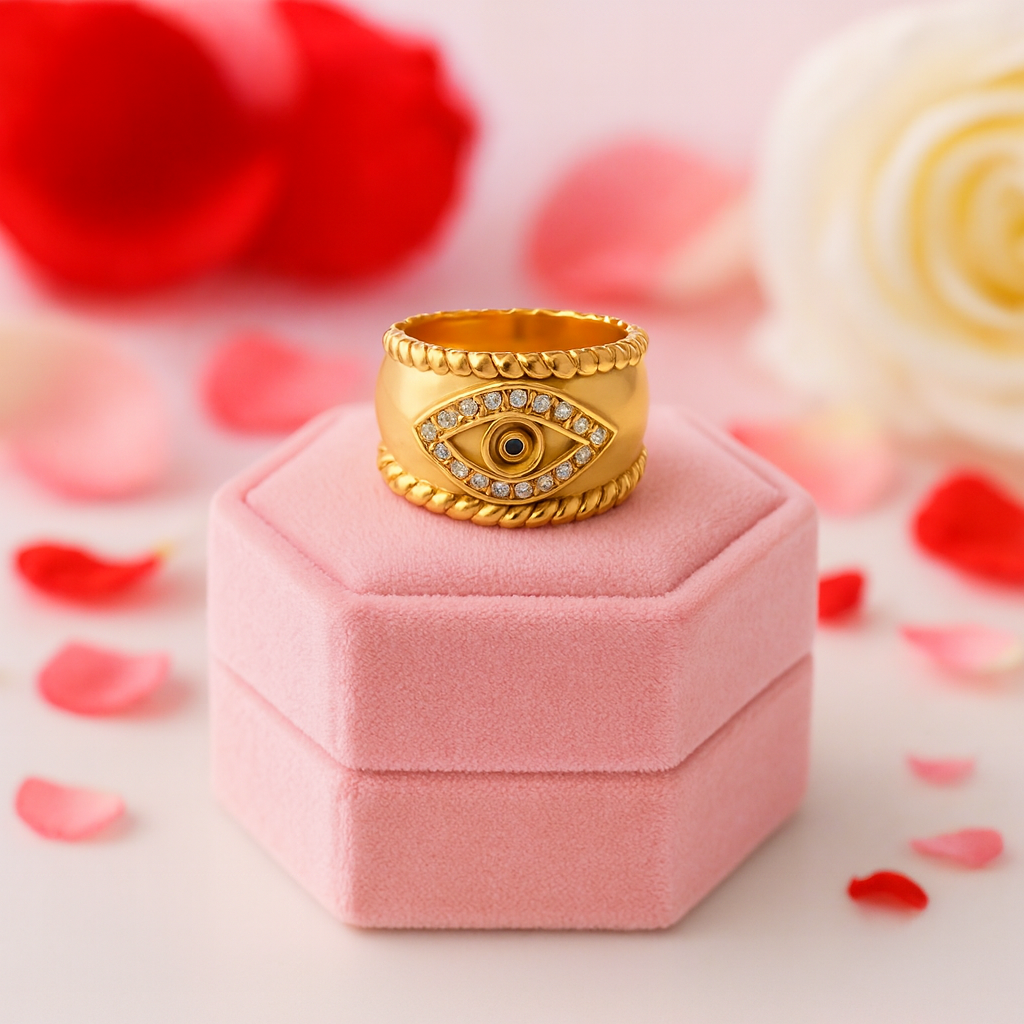 Introducing the Aesthetic Devil's Eye Women's Wedding Band by Black Diamonds New York. This stunning piece of jewelry is a true definition of elegance and style. The high-quality craftsmanship and attention to detail make it a compelling choice for anyone who wants to add a touch of luxury to their special day. Made from stainless steel dipped five times in 18k gold, this gorgeous wedding band is not only affordable but also durable. Get ready to make heads turn and hearts flutter with the mesmerizing beauty of the Devil's Eye.