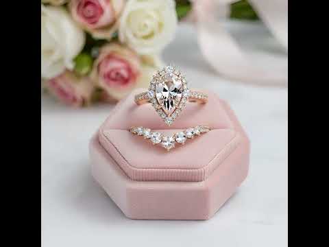 Elegant Rose Gold 2.2 Carat Halo Pear Cut Bridal Ring Set