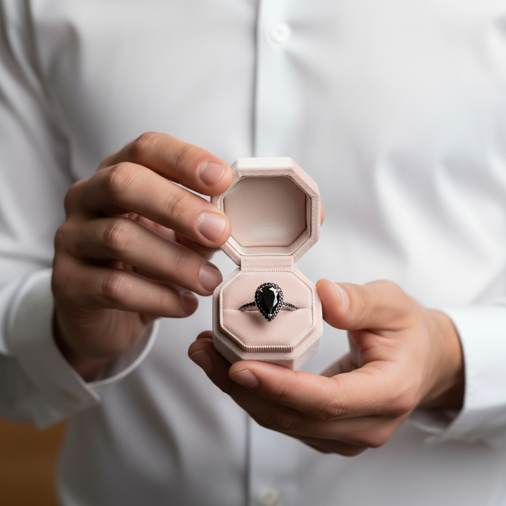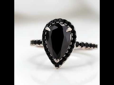 Unique Pear Cut Halo Black Diamond Option Engagement Ring