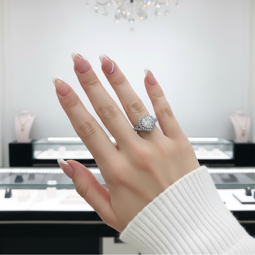 Stone Comparison: Sits brilliantly between Certified Moissanite and CVD Lab-grown Diamonds.