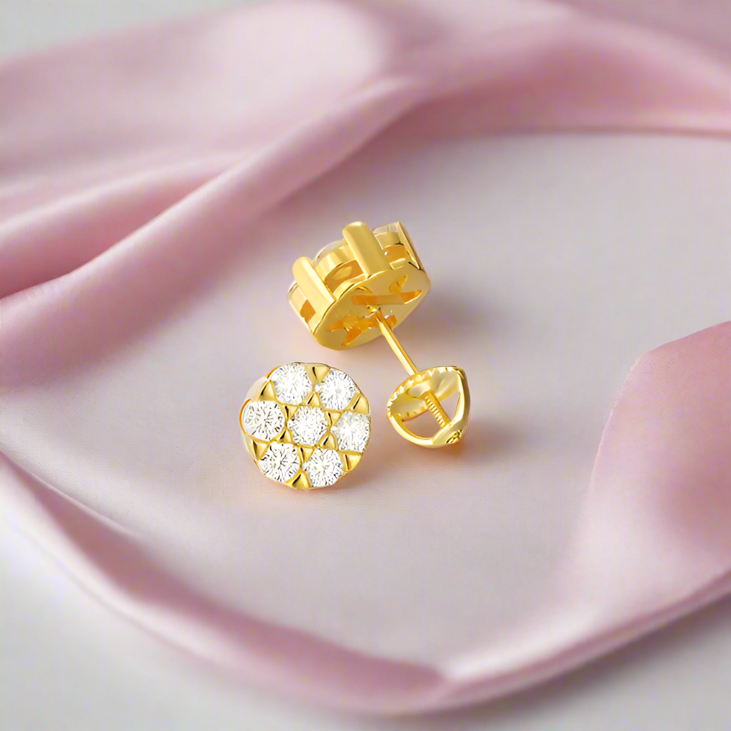 The Diamond D Color Round Earrings showcase certified moissanite stones set in 925 sterling silver or gold combining brilliance with ethical craftsmanship. These classic stud earrings feature secure push-back closures, ensuring both style and comfort for any occasion. Add a touch of timeless elegance to your collection with these high-quality, beautifully designed earrings.