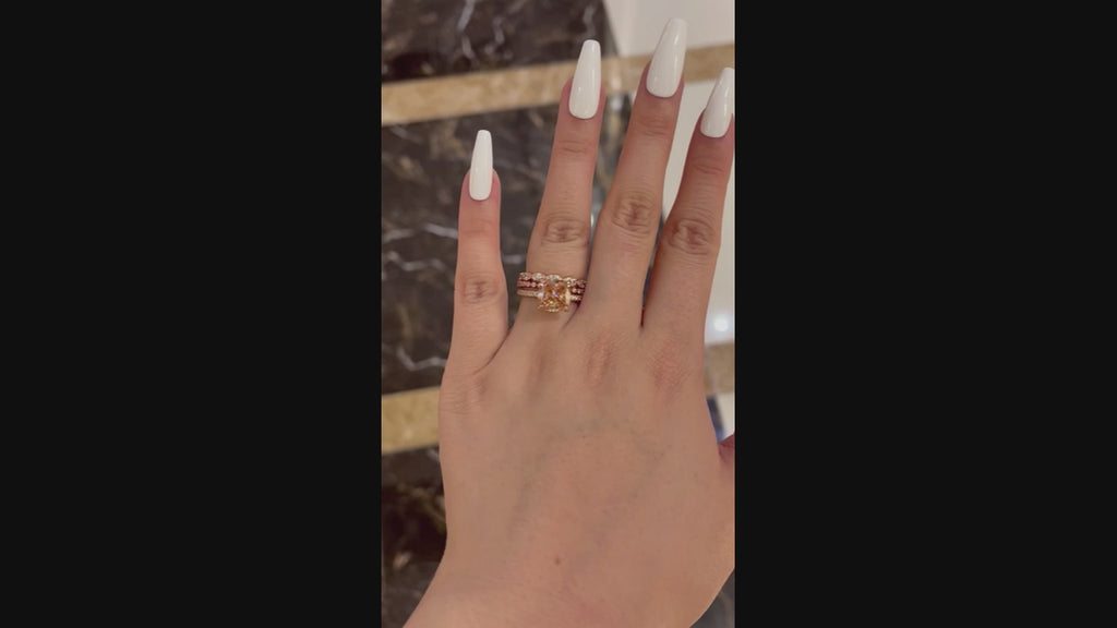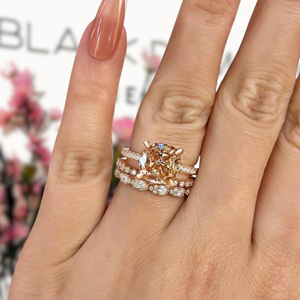 Rose Gold 5ct Cushion Cut Champagne Stone 3PC Ring Set