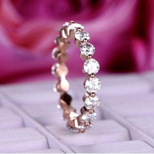 Rose Gold Eternity Round Cut Stackable Wedding Band