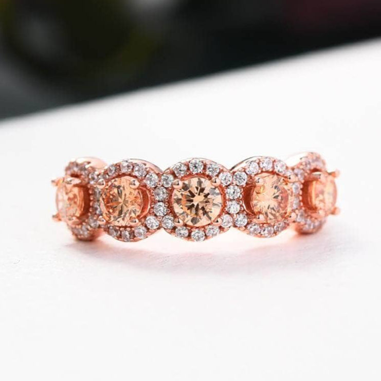 Rose Gold Halo Five Stone Champagne Stone Ring