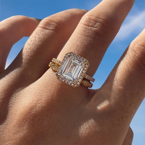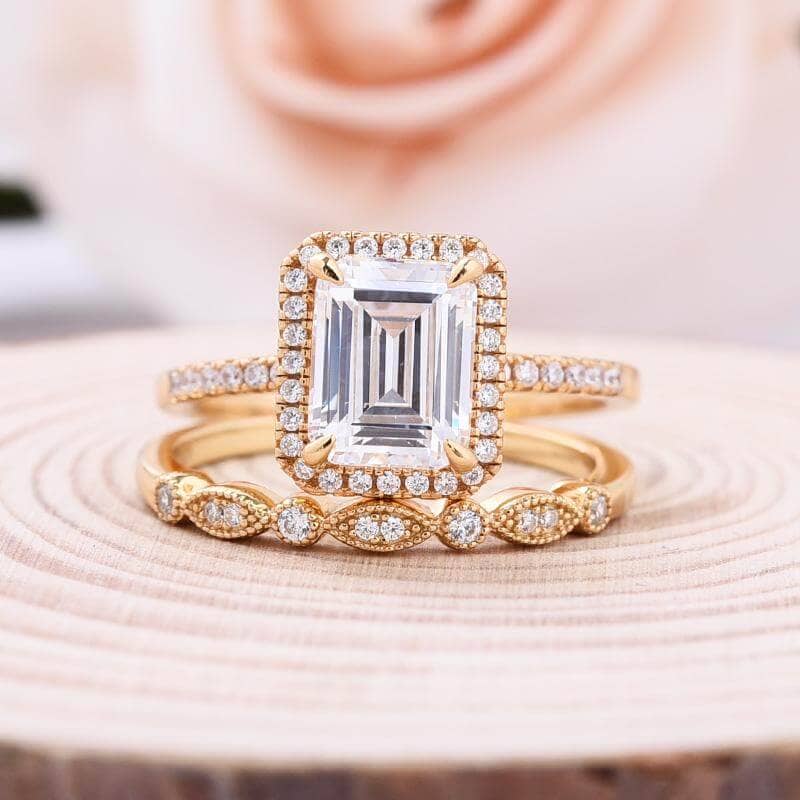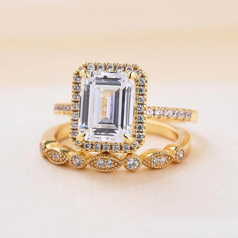 Yellow Gold 4.0 CT Emerald Cut Wedding Ring Set