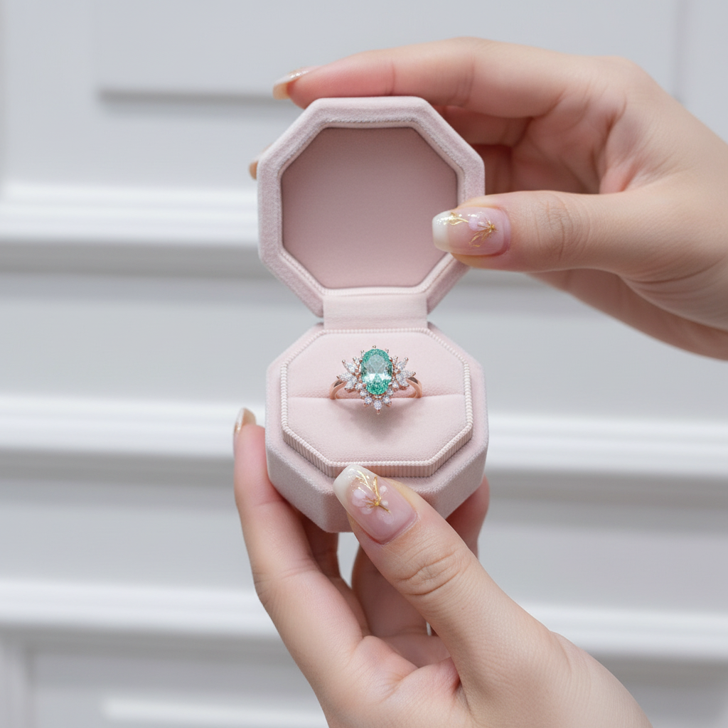 Stone Comparison: Falls between premium zirconium-based crystal and sapphire-grade simulants, with enhanced brilliance and clarity.
