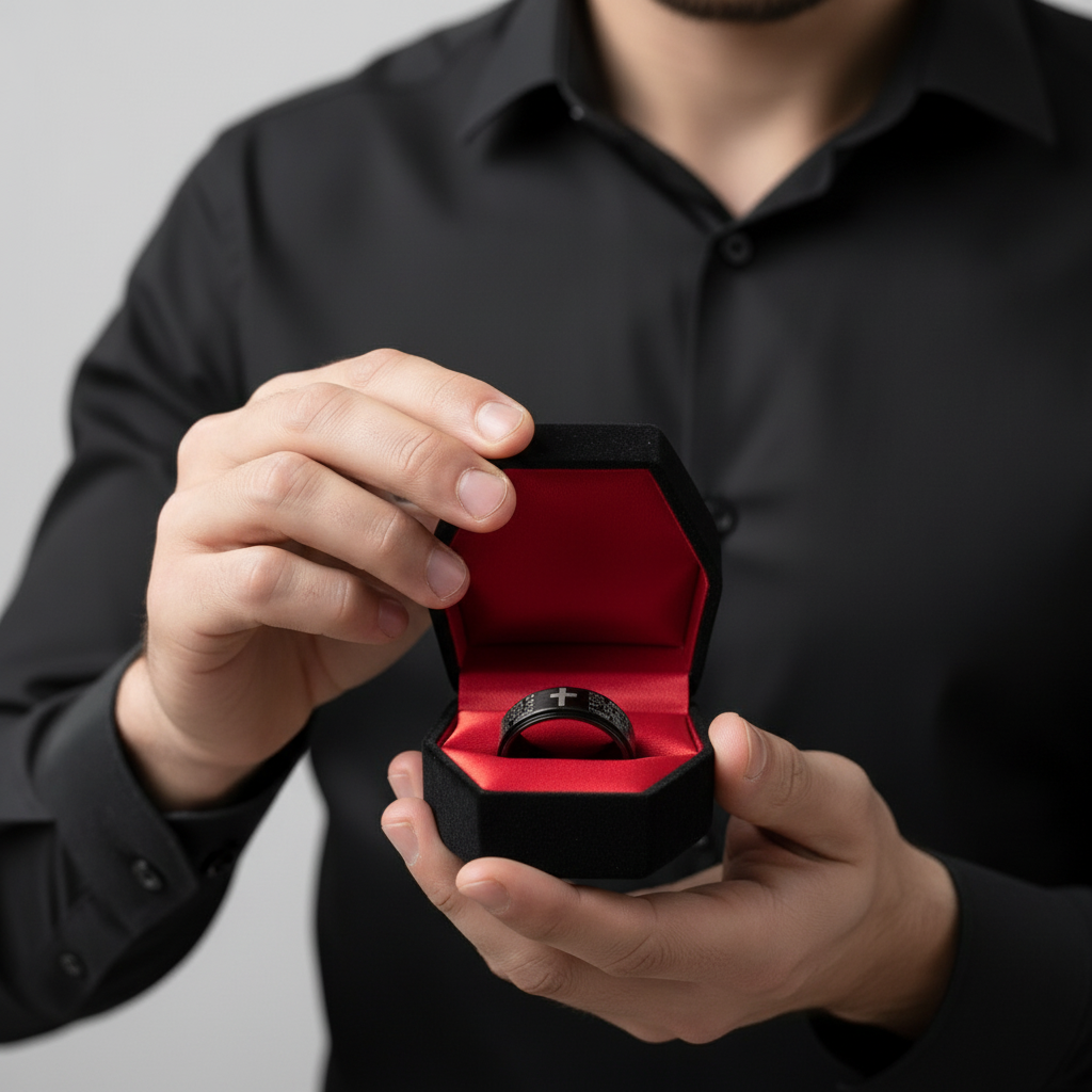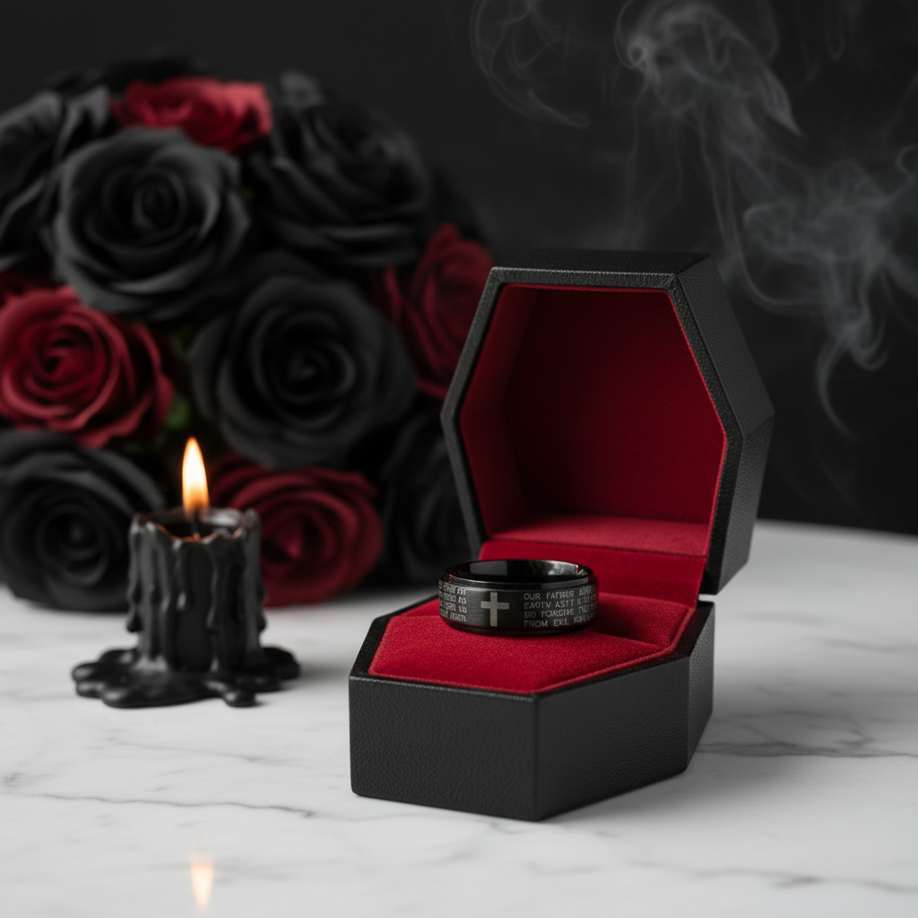 A timeless symbol of commitment, this men's titanium wedding band combines durability with meaningful personalization through an engraved Bible verse. Crafted from premium, ethically sourced titanium, it's built to withstand a lifetime of wear while maintaining its lustrous finish. Skip the inflated price tags and generic designs, this band offers authentic quality and spiritual significance without compromise.