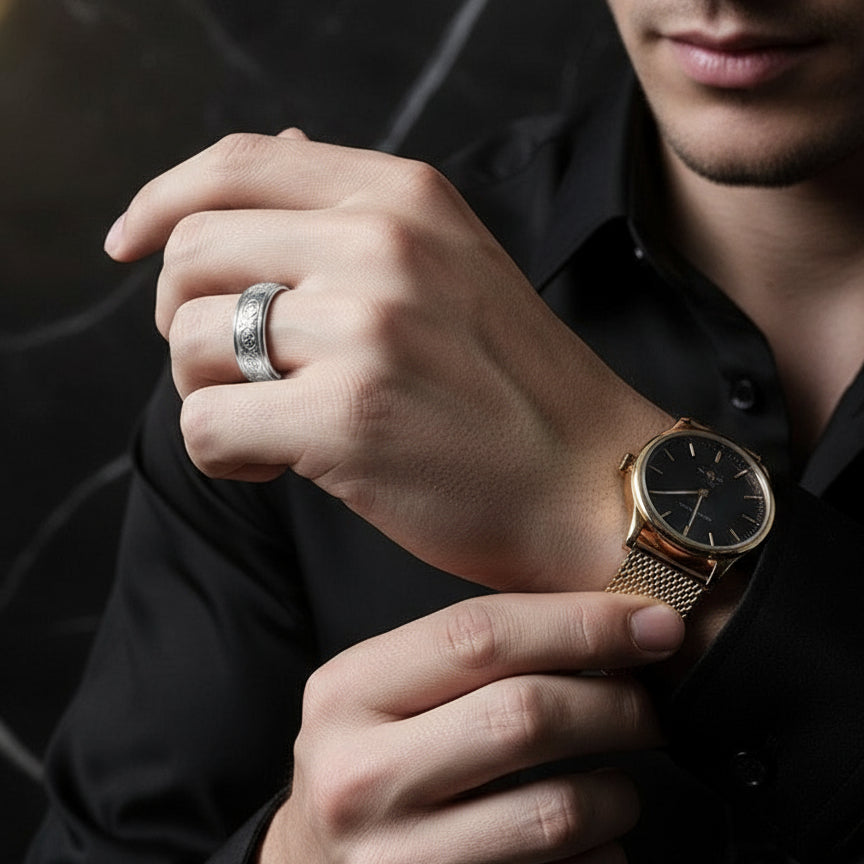 STAINLESS STEEL: Resistance to corrosion and tarnish makes it an ideal choice for jewelry, especially rings. Generally more budget-friendly than precious metals. The durability of these finishes can vary. For example, a polished finish might show scratches more easily than a brushed finish.