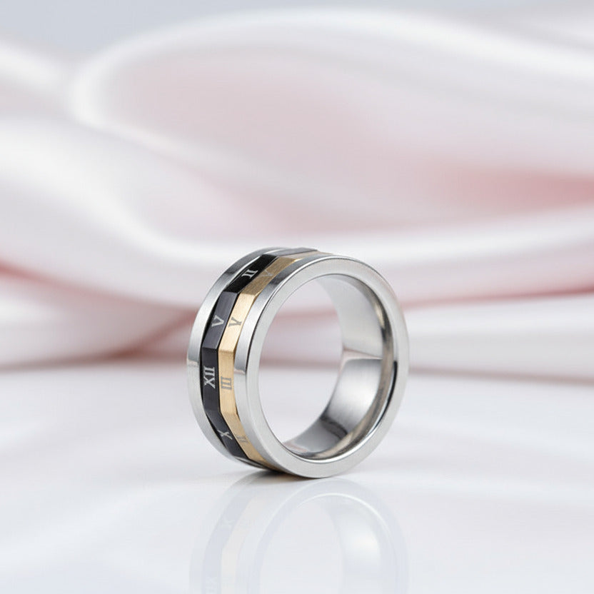 Crafted with precision, this Roman Numeral stainless steel rotatable men's ring band is designed for enduring style and durability. Made from premium, ethically sourced materials, it promises lasting quality and timeless appeal.