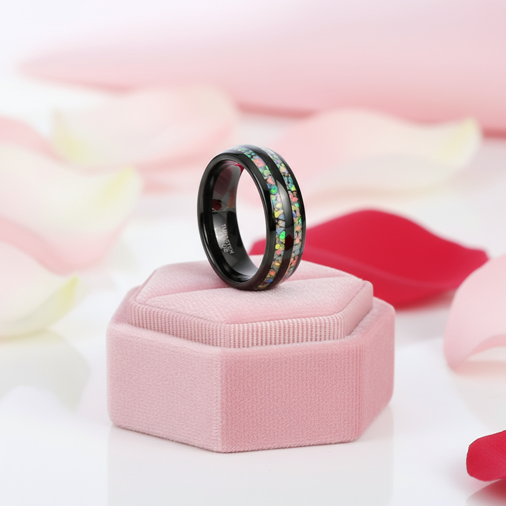 Crafted from premium, ethically sourced materials, this Galaxy Opal & Abalone Shell Men's Tungsten Wedding Band is designed to endure a lifetime. Ditch the dull, overpriced rings and choose a band that's truly unique.