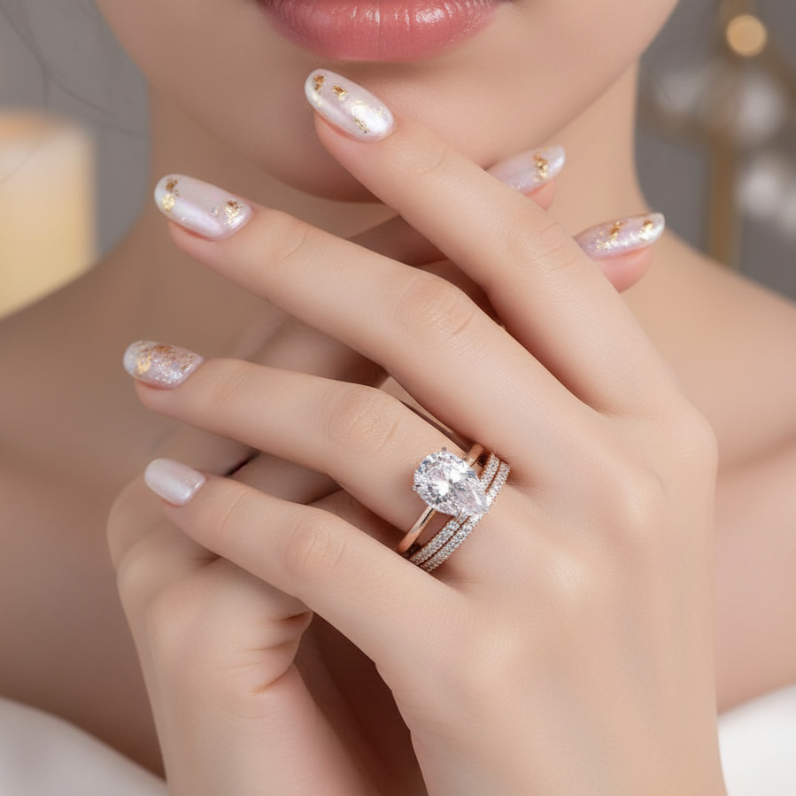 3pc Rose Gold Classic Pear Cut Wedding Ring Set