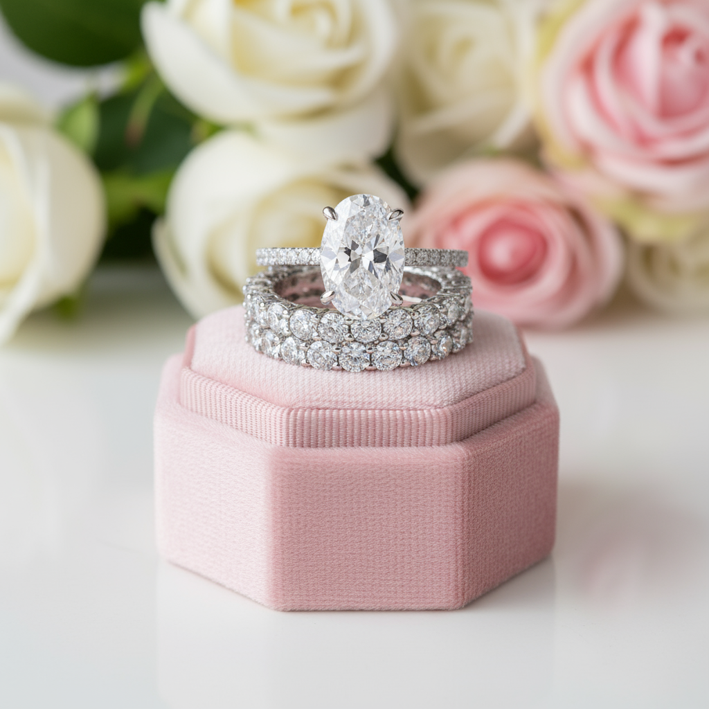 3pcs Stunning Oval Cut Simulated Diamond Wedding Set