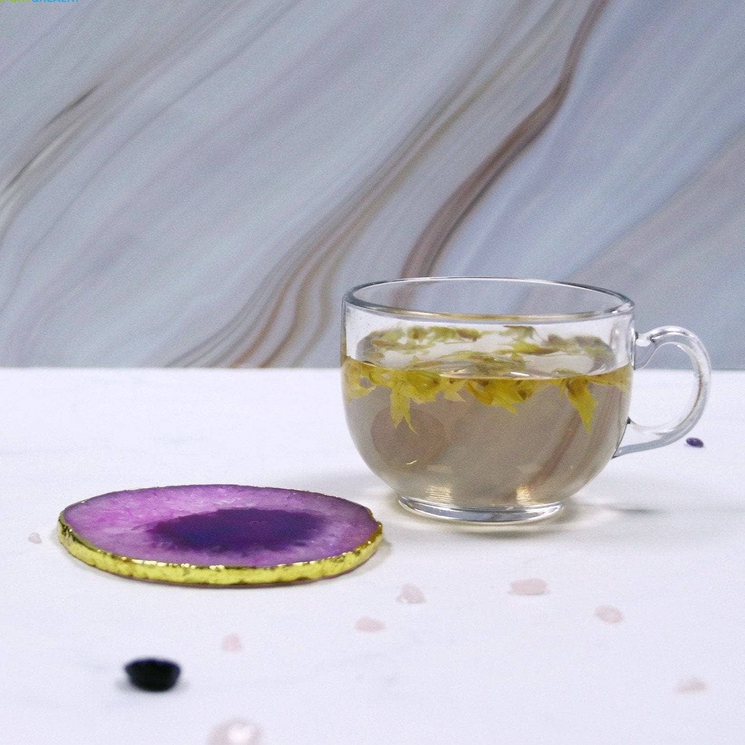 NOTE: These are 100% natural quartz agate stones, thus every piece has a unique pattern and color combination. Pattern and stone natural design shown in the pictures may differ from the actual stone you will receive. Big mugs or average drinking glasses may not be compatible.