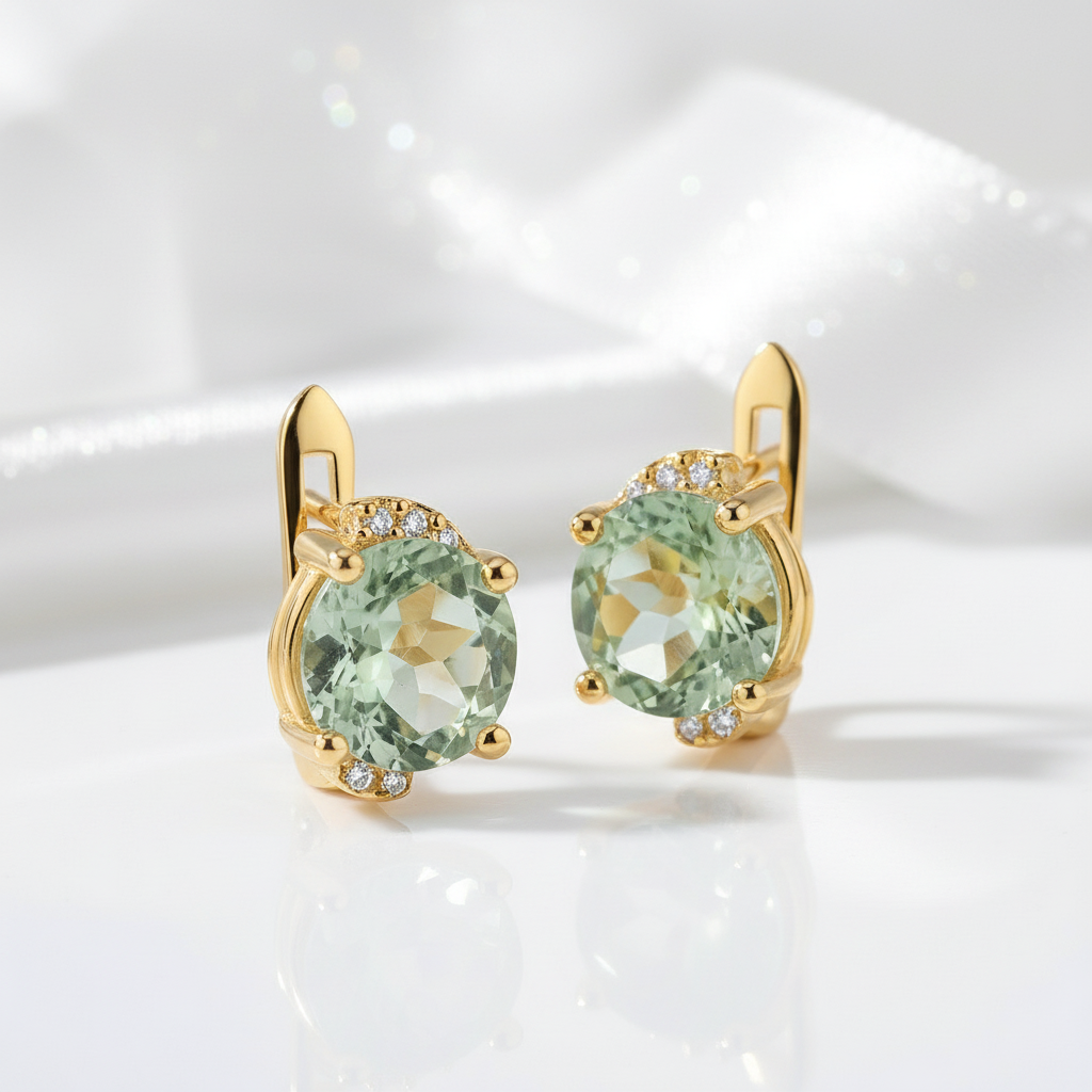 Make a statement with these exquisite 4.08 Ctw Green Amethyst Stud Earrings from Black Diamonds New York. The round cut green Amethyst stones exude a sense of luxury and sophistication, while remaining affordable for every budget. Treat yourself to these stunning earrings and elevate your style with their gorgeous, high quality design that is sure to turn heads wherever you go.