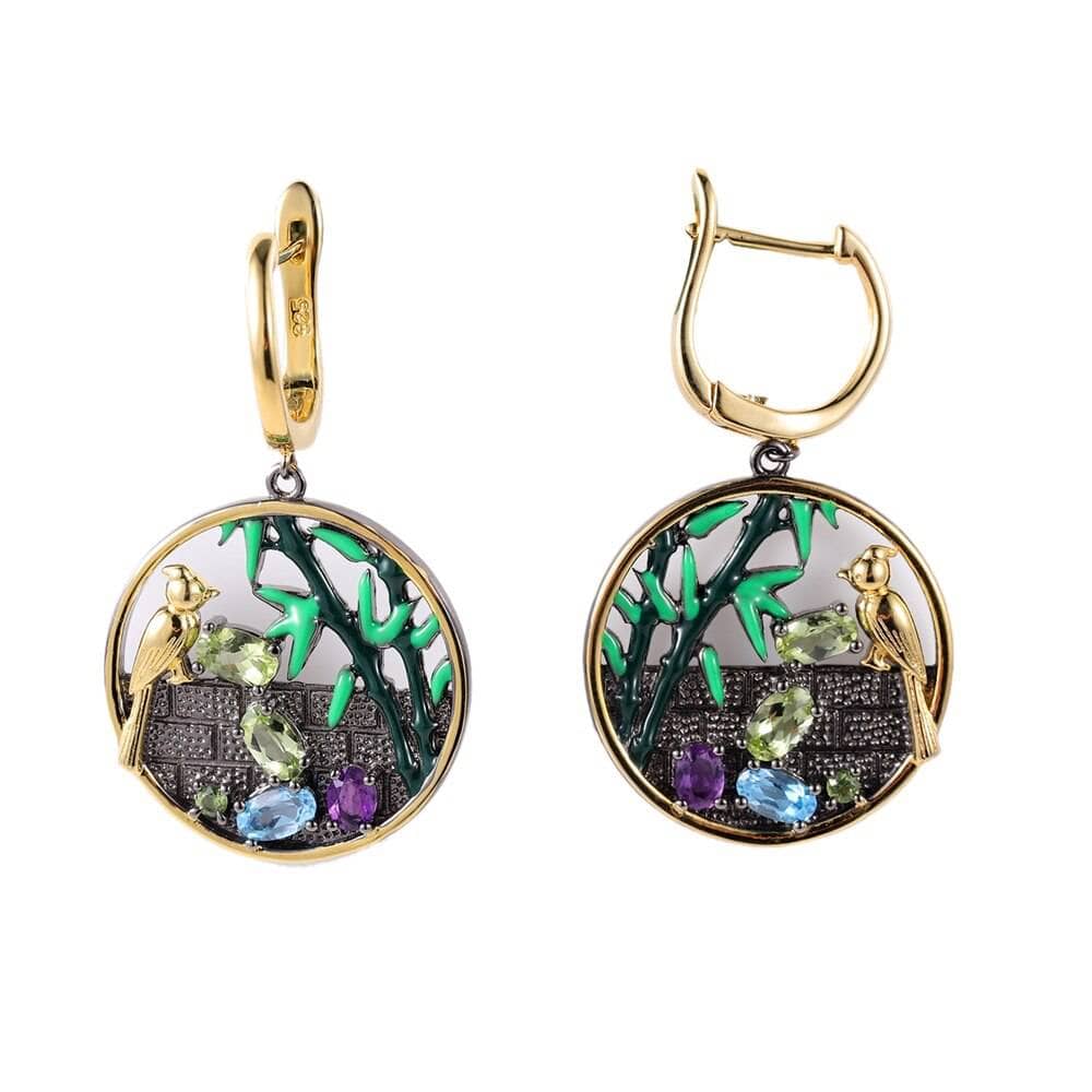 Bird & Bamboo Natural Peridot Dangle Earrings