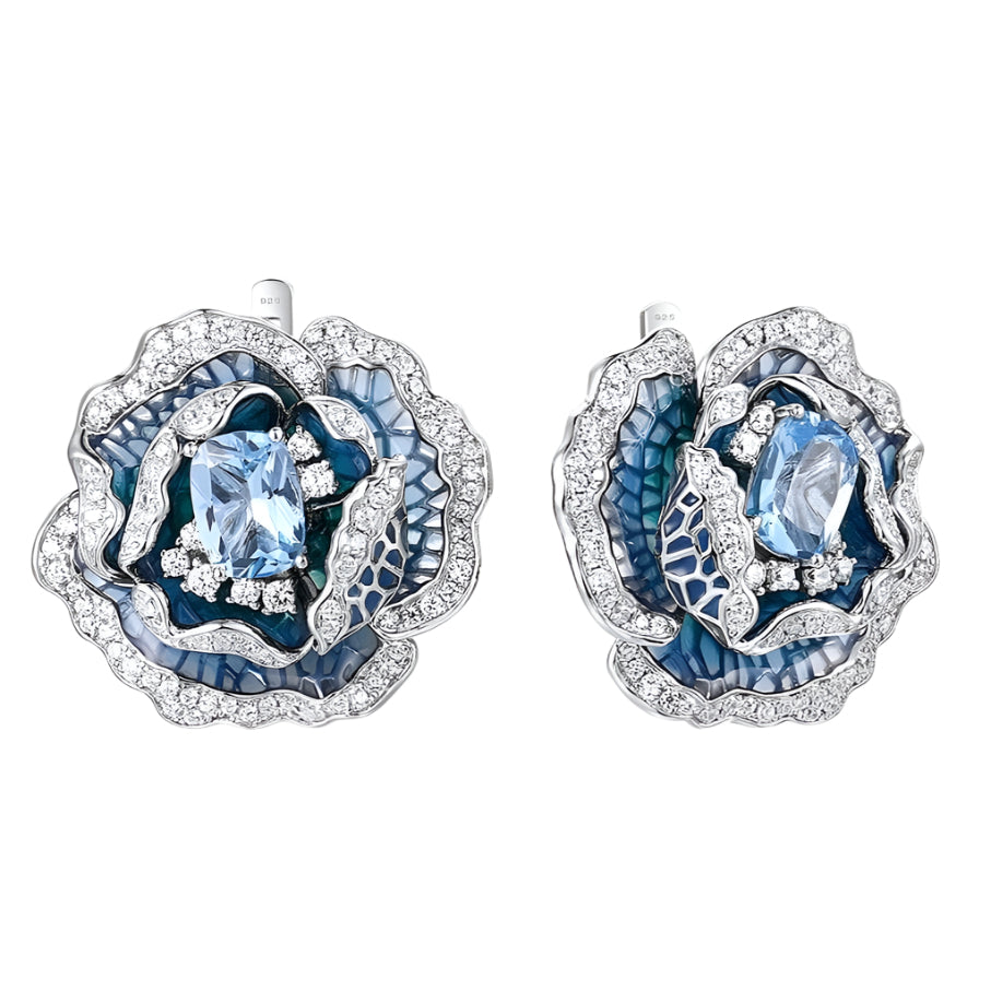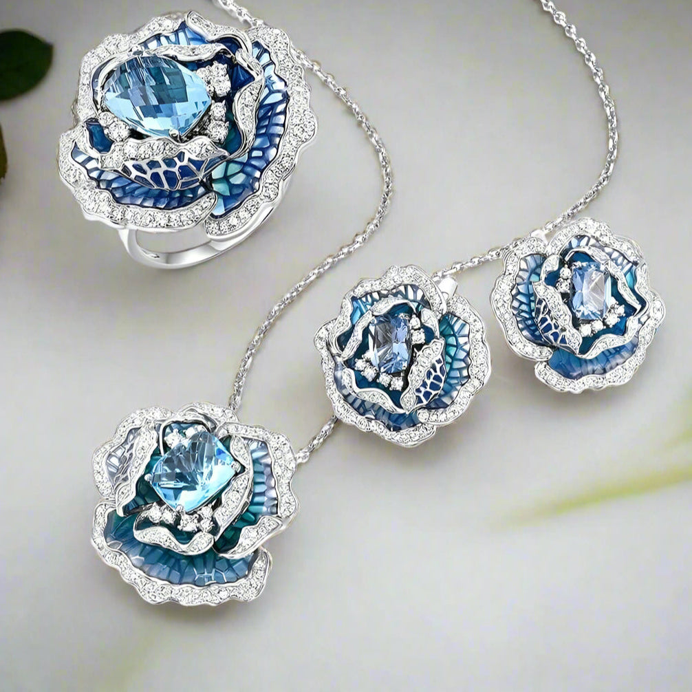 Blooming Blue Enamel Flower Jewelry Set