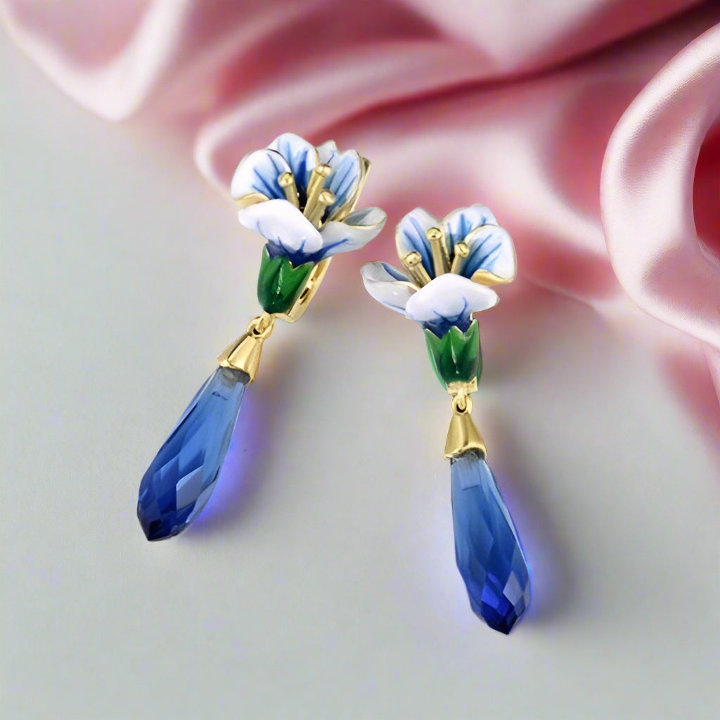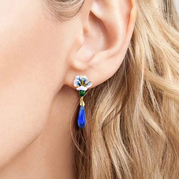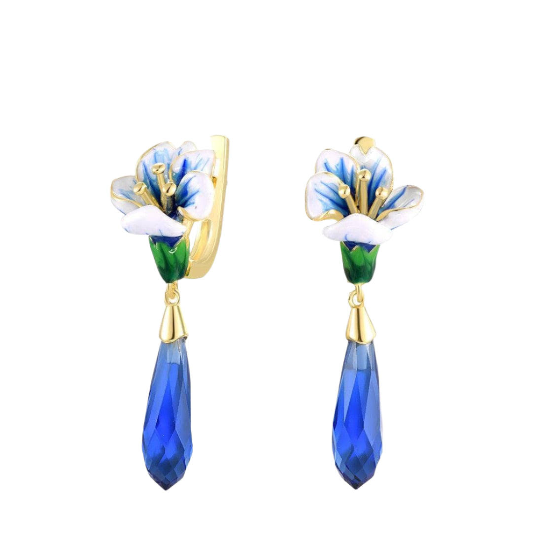 The Blue Stones Enamel Flower Drop Earrings are thoughtfully designed with inspiration from nature, featuring delicate flowers, and natural gemstones carefully handcrafted to suit your unique style. This beautiful pair is sure to draw attention and stand apart from everyday designs. Made entirely from high-quality materials and genuine stones, these earrings support your commitment to quality, sustainability, and individuality. Embrace jewelry that celebrates your true self with confidence.