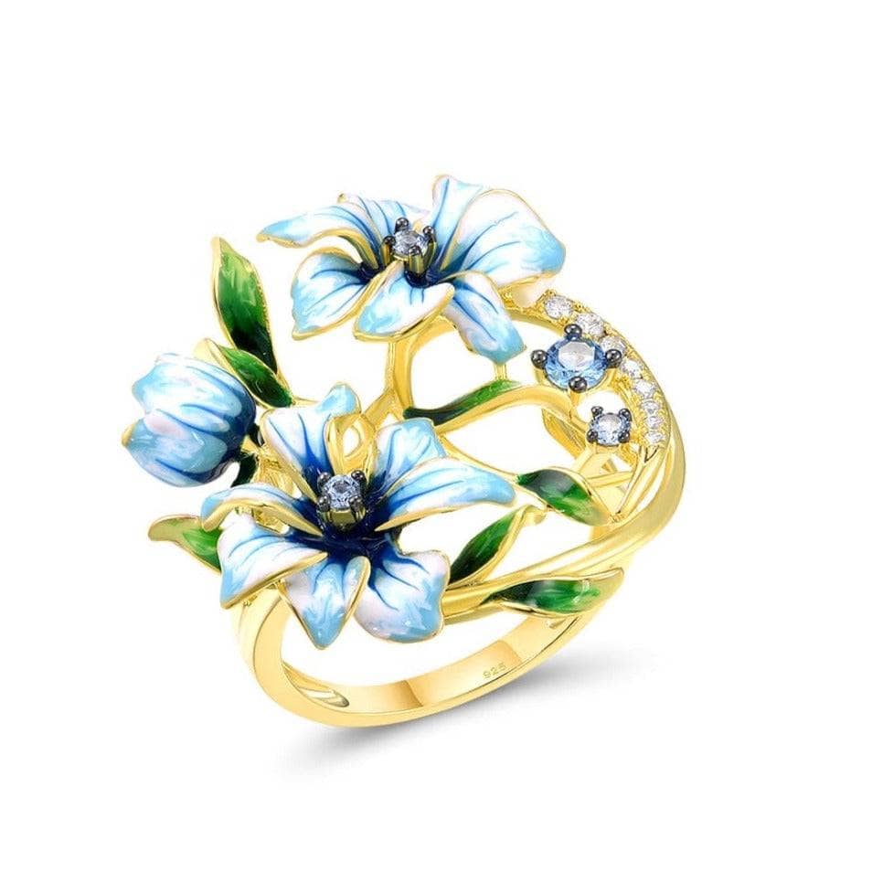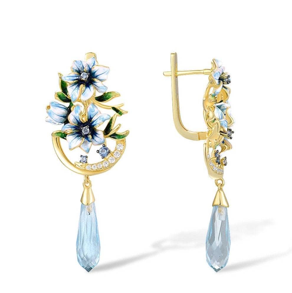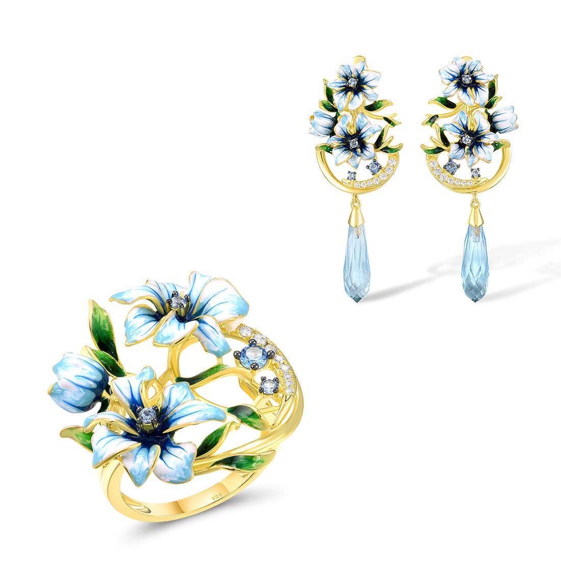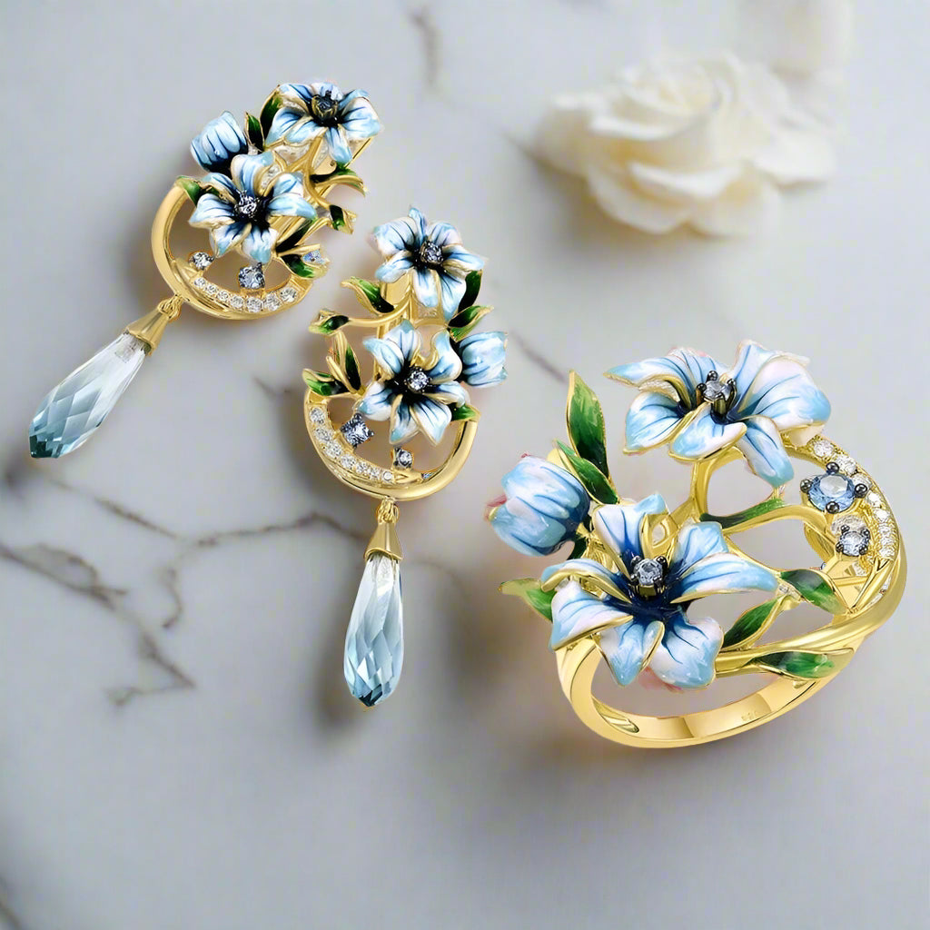 Blue Stones Enamel Flower with Diamond Jewelry Set