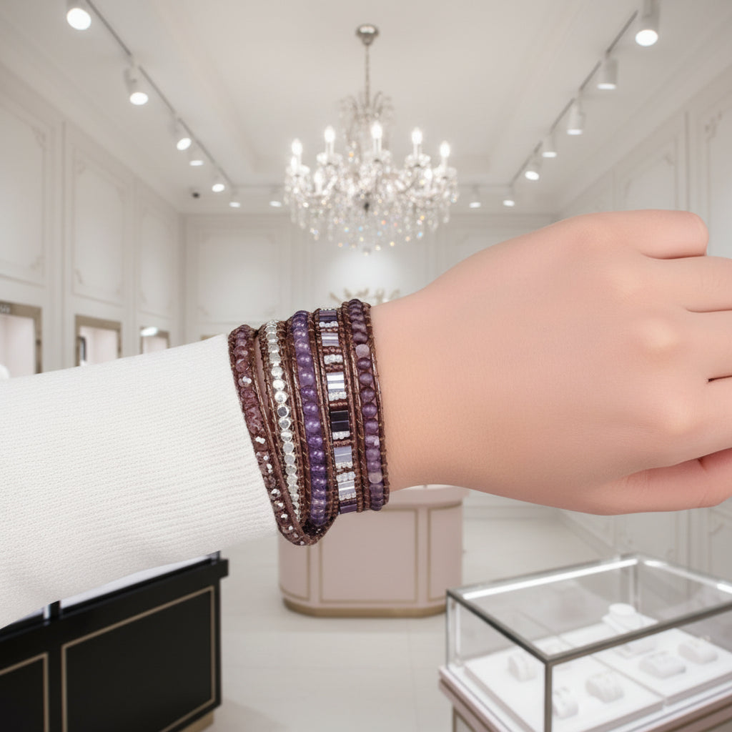 The Bohemian Amethyst & Japan Seed Beaded Bracelet is a beautiful blend of natural charm and delicate artistry. Featuring rich amethyst stones, known for their calming and grounding energy, this bracelet is paired with tiny, intricate Japanese seed beads that add a touch of handcrafted elegance. Whether you're dressing up for a special occasion or simply adding a meaningful piece to your everyday look, this bracelet offers both style and a sense of peace. Its lightweight design ensures comfort, making it an easy choice to wear all day long. A lovely way to carry a piece of tranquility with you wherever you go.