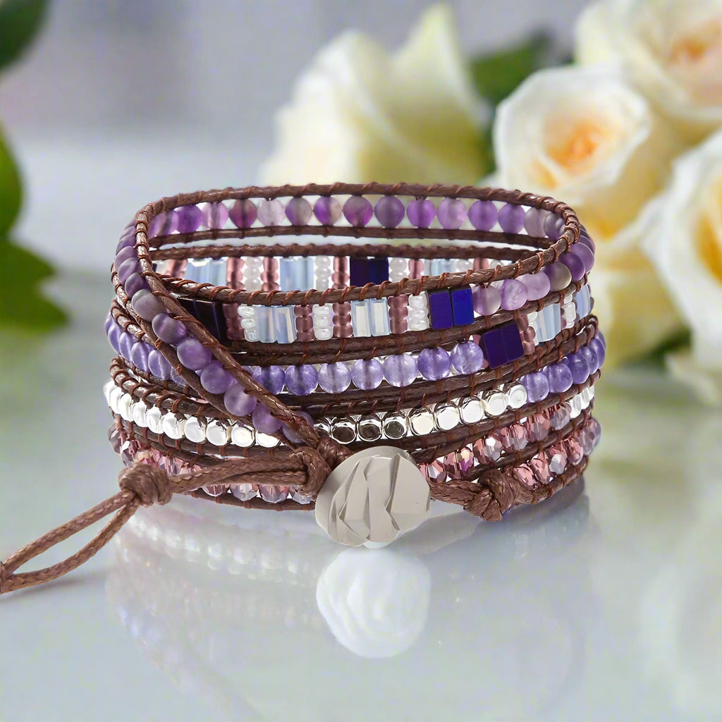 Bohemian Amethyst & Japan Seed Beaded Bracelet