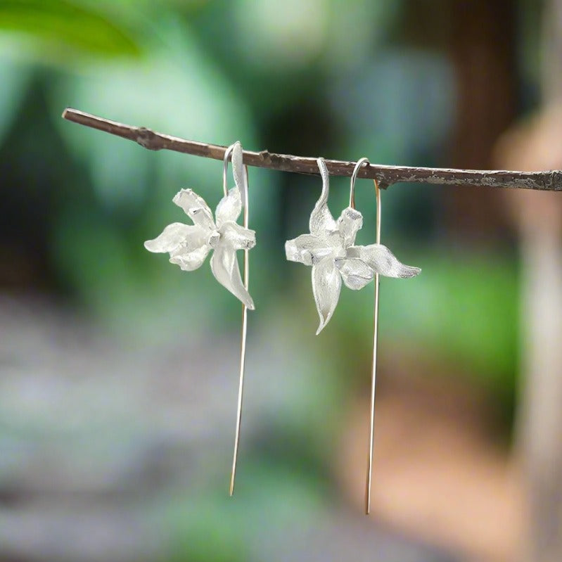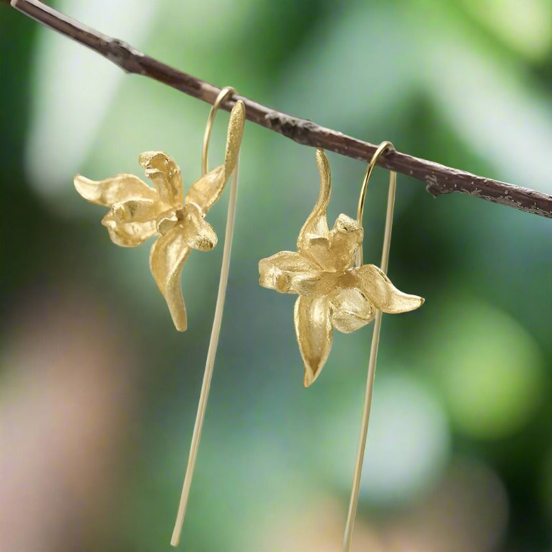 Elegant Iris Flower Dangle Earrings
