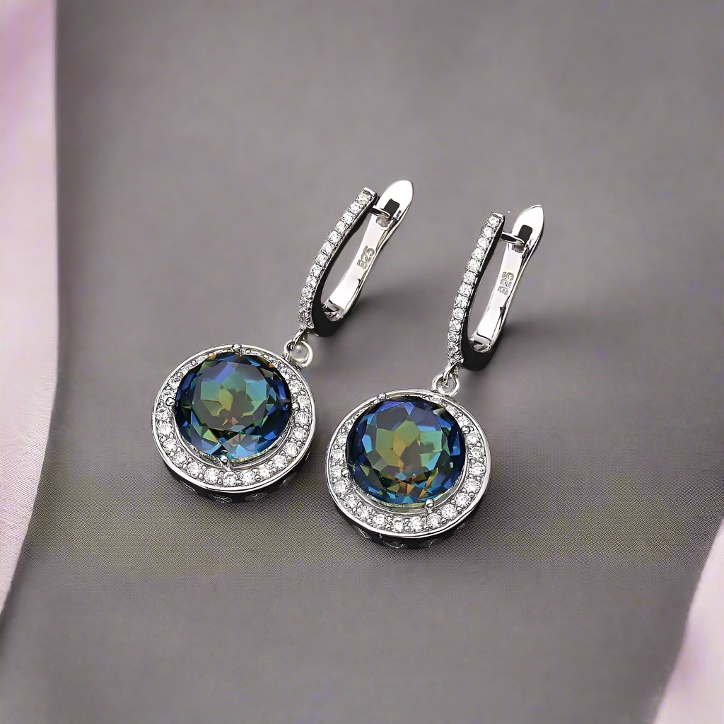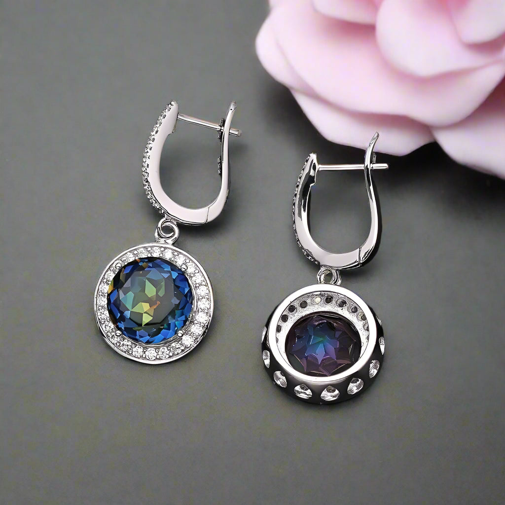 Make a statement with these exquisite Round Cut Natural Blue Mystic Quartz Earrings by Black Diamonds New York. The combination of the stunning blue Mystic Quartz and elegant design make these earrings a true work of art. Crafted with high quality materials, these earrings exude luxury and sophistication. And at such an affordable price, these earrings are a steal for anyone looking to add a touch of glamour to their wardrobe.