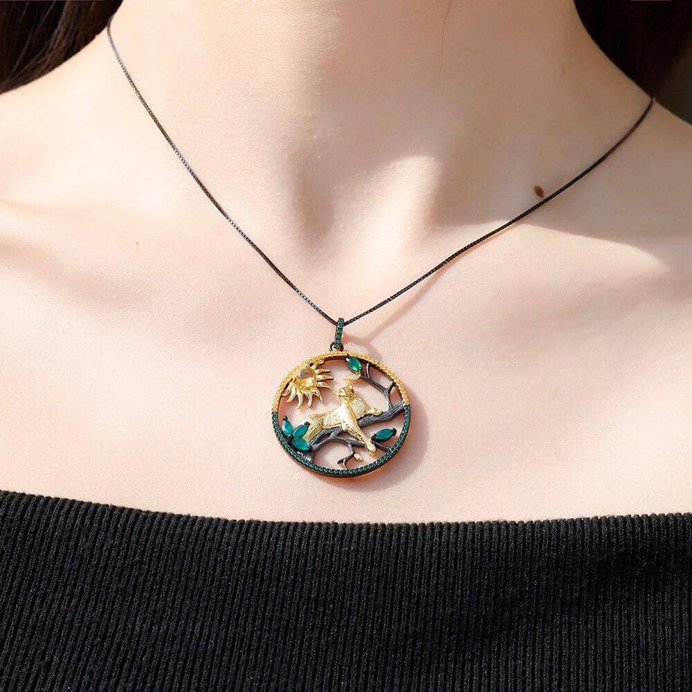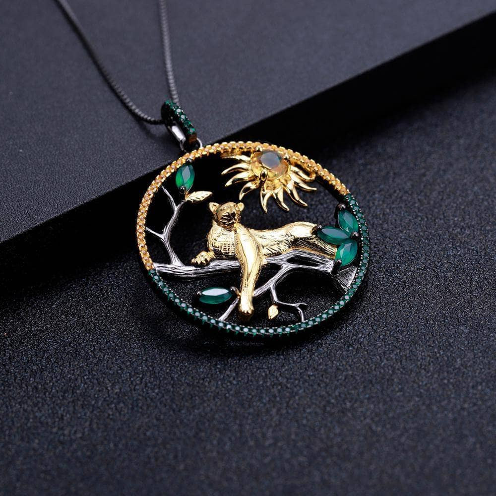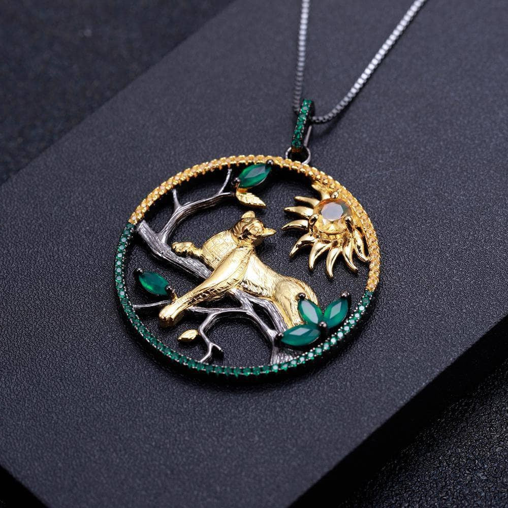 Year Of The Tiger- Natural Citrine Agate Leopard on the Tree Necklace