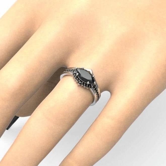 Beautiful In My Eyes- Black Diamond Marquise Cut 14K White Gold Gothic Wedding Ring