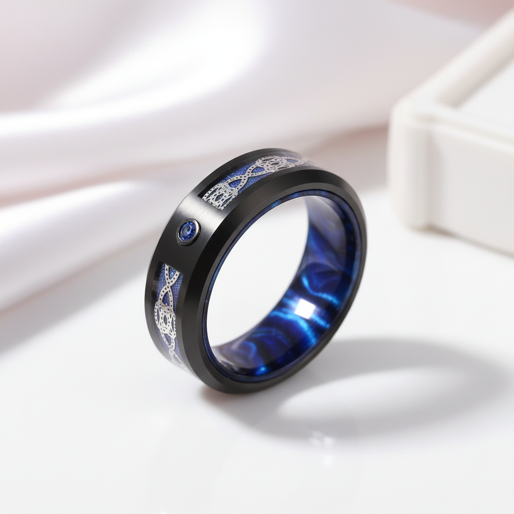 Blue Diamond Black Dome Celtic Knot Tungsten Men's Ring
