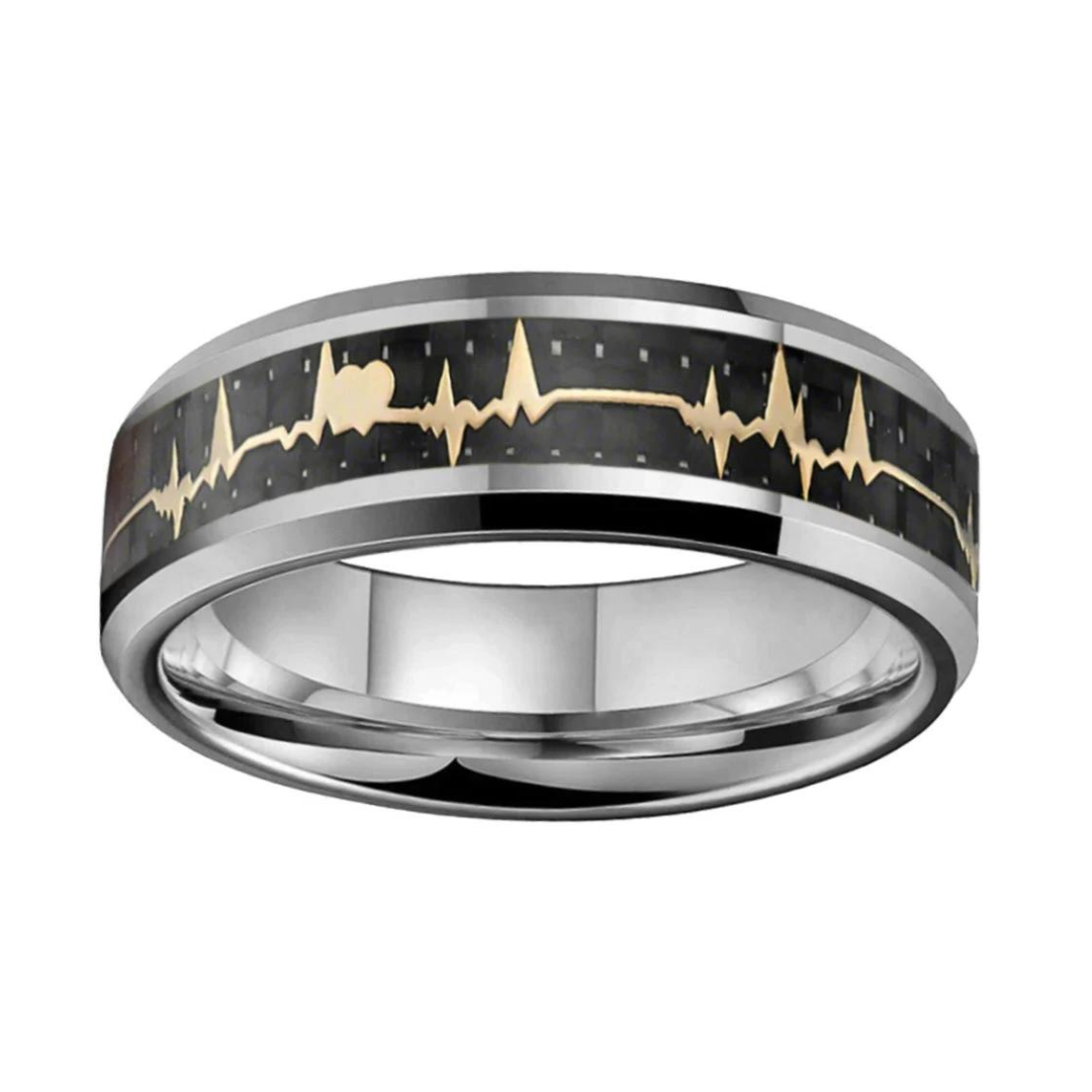Heart Love Ring with Black Carbon Fiber Inlay Tungsten Men's Ring