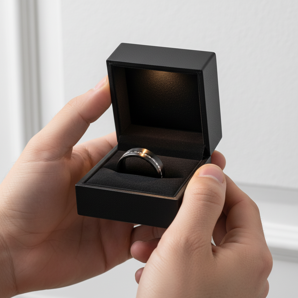 TUNGSTEN CARBIDE: Known for its exceptional hardness and durability. Highly resistant to scratches and dents, making it a popular choice for rings and other jewelry. However, it's important to remember that no metal is completely scratch-proof. Often has a polished, brushed, or matte finish. These finishes are typically permanent and won't wear off easily. However, certain finishes, such as coatings, might wear off over time with heavy use.